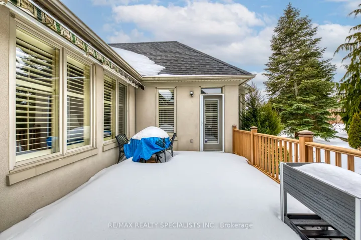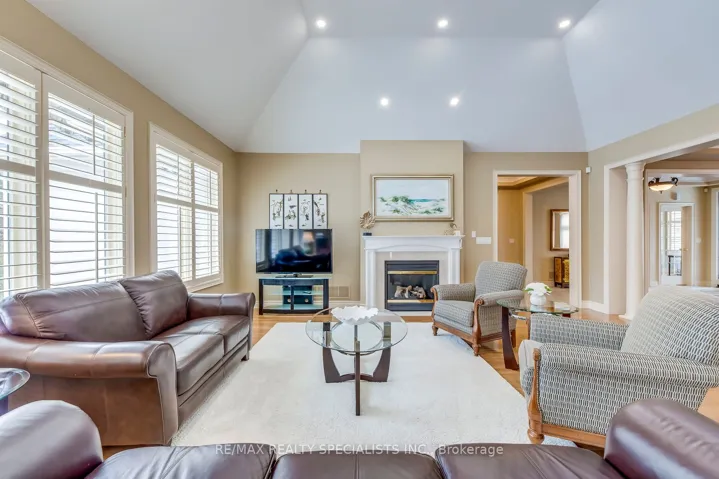 Welcome to 717 Hidden Grove, an exceptional residence in Mississauga’s sought-after Lorne Park neighbourhood. Homes within the exclusive Watercolours enclave are rarely available, a reflection of the community’s refined atmosphere, privacy, and low-maintenance lifestyle. This elegant bungalow showcases thoughtful design and quality finishes, seamlessly balancing comfort and practicality for everyday living and entertaining. Nine-foot ceilings and a bright, open-concept main level highlight a generous eat-in kitchen with breakfast bar and walkout to a tranquil backyard featuring an oversized deck. Overlooking the kitchen, the living room stands out with a dramatic vaulted ceiling, hardwood floors, and a warm gas fireplace creating an inviting space to relax or gather. The main-floor primary bedroom is a private sanctuary, complete with a five-piece ensuite, large walk-in closet, and expansive windows that flood the space with natural light The main level also includes a spacious dining room ideal for hosting, a second bedroom, and a full four-piece bath. A separate office or sitting room provides a quiet retreat for work or leisure. The sizeable laundry room adds everyday convenience, while an oversized double garage offers direct interior access. The finished lower level provides flexible additional living space, ideal for a media lounge, home gym, guest accommodations, or hobbies. Perfectly suited for those downsizing or seeking a carefree lifestyle, this home includes maintenance services such as lawn care, snow removal, and window cleaning. Conveniently located with easy highway access to downtown Toronto and close to Port Credit’s waterfront, boutique shopping, acclaimed restaurants, and scenic Lake Ontario trails.