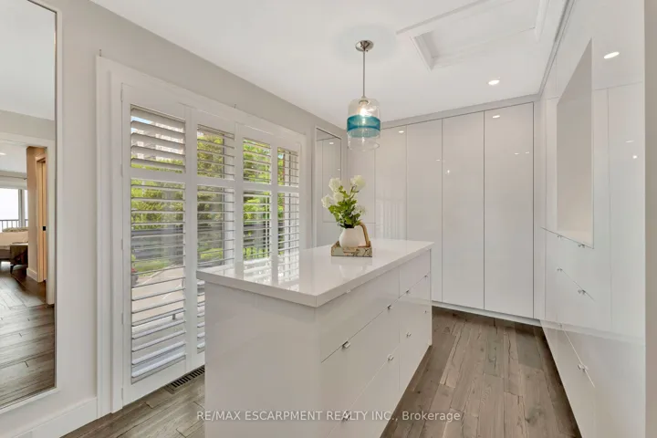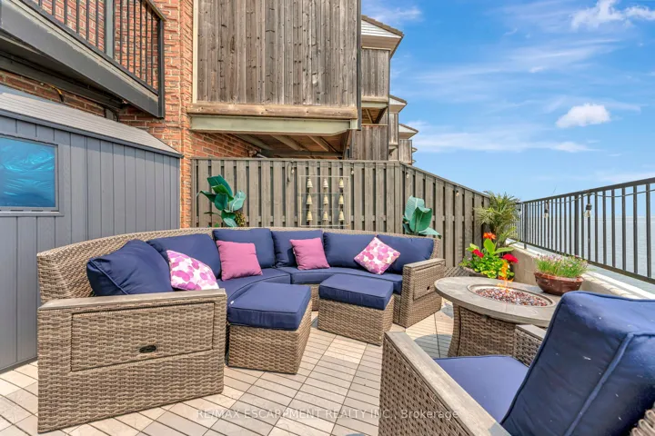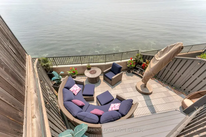 Client Rmks:Welcome to the ultimate lakefront lifestyle. This fully renovated 3-level townhouse offers unobstructed, panoramic views of Lake Ontario so close to the water, you can practically dip your toes in. Located just 600 metres from downtown Burlington, this is a rare blend of tranquility and convenience. This 3-level townhouse (1,600 plus SF) offers 1 bedrooms (potential for 2nd if you converted large walk-in closet back into a bedroom), 3 bathrooms (2 full, 1 powder) and 4 separate patio/terraces (huge 400 SF lower terrace at the water’s edge). In 2020 this unit was completely gutted to the studs and rebuilt by the renowned Bespoke Home Solutions with a total renovation budget exceeding $500K . The gourmet kitchen has been masterfully crafted with designer finishes including: Insinkerator food waste disposal, hot water tank/dispenser, Porter & Charles warming drawer, Built in Miele Appliances (including a $7K plumbed in Coffee Machine), microwave/convection oven, Combi Steam Oven, Dacor Fridge & Freezer and Gravelle custom cabinetry throughout. The spacious primary suite is a true retreat, featuring a spa-inspired ensuite with heated floors, a two-person soaker tub, and a private balcony with stunning sunrise views over the lake. The second bedroom has been converted into a designer walk-in closet with custom cabinetry and a centre island, offering both form and function (easily reverted to a bedroom if desired). Lower level family room offers a full bathroom, ample storage and ability to offer a guest suite with use of a murphy bed. Backwater valve in basement. Home is equipped with Sonos built in ceiling speakers with hooked up amplifiers and speaker selector options. Large 400 SF back terrace is fashioned with a BBQ gas line and has a hook up for a Hot Tub.