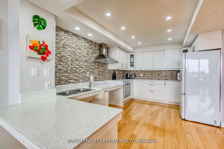 Totally Renovated and updated Large Unit with Bright, Spacious 2 Bedrooms and Solarium. Open Concept Living Room/ Dining Room with Floor to Ceiling Panoramic Western Views. Spacious Eat-In Kitchen With Lots Of Cabinets & Counter Space. Master Bedroom With 3Pc Ensuite. 2nd Bedroom Adjoining Solarium/Office. In Suite Laundry. Kitchen Counters have been lowered to accomodate Wheel Chair. Situated In Much Sought After Pinnacle 2. Indoor Pool, Sauna, Gyms, Tennis, Games Rooms and More. Close to shopping, transit, school, parks, and easy access to highways. 24-hour concierge. Front desk Security has the key to the unit for Easy Showings. Please note that the entrance door to unit is automatic for easy wheelchair access.