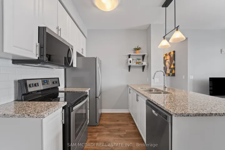 Find your dream condo within the Westmount Community in the town of Oakville. Welcome to this stunning corner unit where modern design meets breathtaking and unobstructed views with a gorgeous sunset. This spacious and carpet free property offers an open-concept layout with modern finishes, 9-ft ceiling, and upscale flooring throughout with quality ceramic flooring in bathrooms. The stylist kitchen features granite countertop, stainless steel appliances, and plenty of storage. The primary bedroom comes with seldom found walk-in closet and a private 3-piece ensuite bathroom with quartz counter on vanity. The 3-piece second bathroom comes with quartz counter vanity and ensuite laundry. The condo comes with two underground, owned parking spots and one underground owned locker. Relax in your private balcony with beautiful and unobstructed views. Building amenities include a gym, a party room, a yoga studio and a rooftop terrace. Ideal for young professionals, healthcare workers in Oakville General Hospital, First time home buyers, down sizers or investors. The condo is within five minutes drive to the Oakville General hospital, and close to community centre, Church, Gurudwara, walking trails, parks, high rated schools, public transit and major highways.