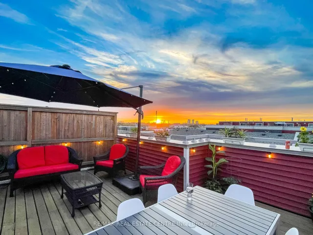 Experience refined urban living just steps from the Lake in sought after Long Branch. Move in ready, this 2 bedroom, 2.5 bath, 1,320 sq. ft. townhome features an incredible open-concept layout filled with natural light. The high-end kitchen is a true showpiece, complete with a massive center island- perfect for entertaining, elegant countertops, stylish backsplash, under cabinet lighting, stainless steel appliances, and abundant storage. Custom light fixtures add designer flair, while the beautiful laminate flooring elevates the homes contemporary aesthetic. On the 2nd floor, the spacious primary features its own balcony , walk-in closet, and a sleek 3-piece ensuite. The generously sized 2nd bedroom is perfect for guests, a home office, or a nursery. On the 3rd floor enjoy the tranquil and private rooftop terrace with views spanning from Mississauga to the CN Tower.