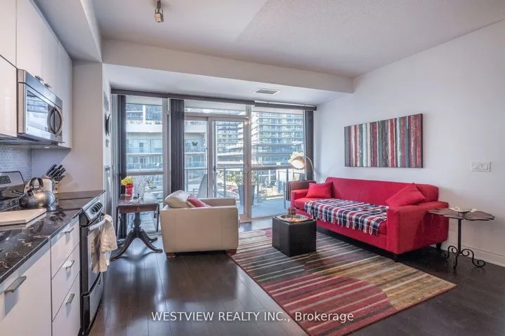 Beautifully appointed one bedroom corner unit with a large oversized Balcony (270 Sqft) with two walk-outs overlooking the colourful landscaped garden. This rare Podium level unit allows for convenient access to the five star 5th floor roof-top BBQ deck & lounge area that features cabana seating & gas fire pits overlooking the lake and city skyline. Unit Also provides for quick & convenient accessibility from the podium level elevators to the side of the building. Spacious living area allowing for you to furnish to your personal taste. Bright & clean white kitchen cabinets & granite counter-tops. The spacious bedroom features a walk-out to the balcony as well as a large window., plenty of natural light. Also includes a large double pantry space for additional storage needs. The storage locker conveniently located on the same 3rd floor, down the hall from the unit. Building offers best of amenities, steps to local coffee shops, restaurants & miles of walking and biking paths along the lake.