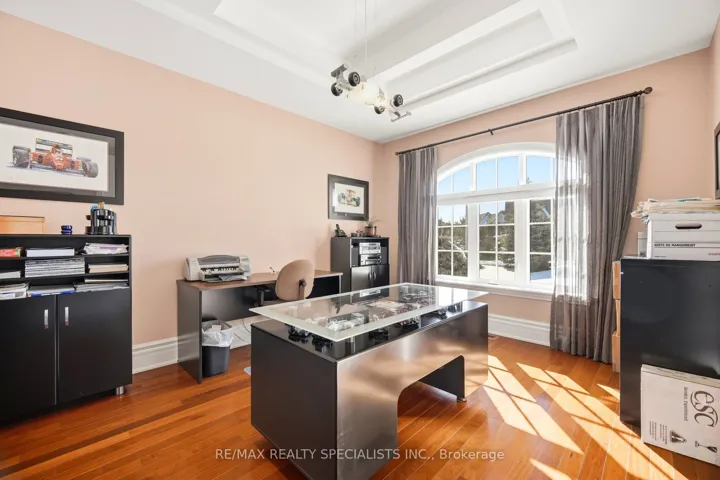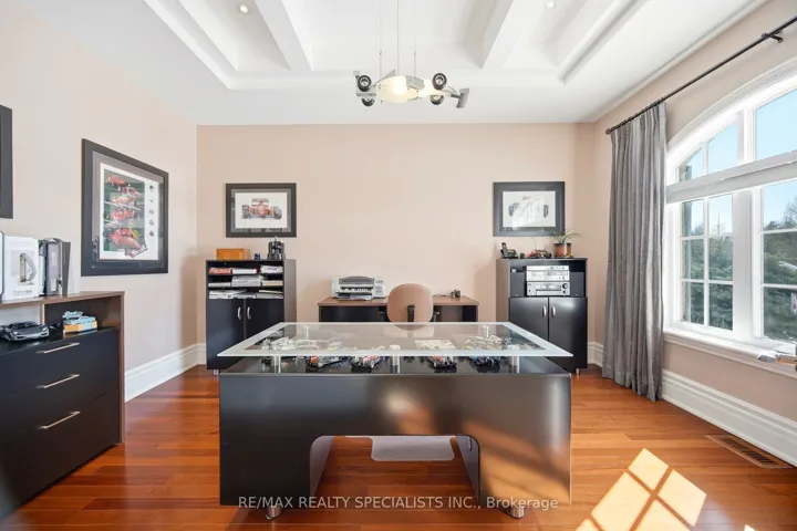 Welcome to 1 Edgewild Drive, an extraordinary custom residence situated on one of Caledon’s most prestigious and sought-after streets, offering breathtaking views and exceptional privacy. This meticulously designed home showcases superior craftsmanship, timeless finishes, and extensive high-end upgrades throughout.The grand family room features an impressive 18-foot cathedral ceiling, creating a stunning focal point filled with natural light. Elegant waffle and coffered ceilings enhance the main living areas, including the family room, dining room, office, kitchen, and bedrooms, delivering architectural sophistication at every turn. Solid wood poplar interior doors and trim extend throughout the entire home, including the finished basement. All bathrooms are luxuriously appointed with floor-to-ceiling granite and travertine tile. The primary ensuite features Hansgrohe shower fixtures, a Brizo freestanding tub filler and faucet, and custom solid maple cabinetry. Every bedroom includes a walk-in closet with professionally designed built-in organizers. Premium jatoba hardwood flooring and porcelain tile with custom mosaic detailing flow throughout the home. Professional window treatments are installed throughout, including motorized blinds in the family room and kitchen, as well as motorized drapery in the primary bedroom. The thoughtfully designed laundry room and mudroom include extensive custom cabinetry for optimal functionality and storage. The fully finished basement offers exceptional versatility with two separate French-door style exterior entrances and dedicated spaces including a private office, gym, recreation room, craft room, and workshop. Comfort is enhanced by an in-floor radiant heating system, supported by a boiler heating system with instant hot water capability. A central manifold plumbing system provides dedicated supply lines to each fixture.