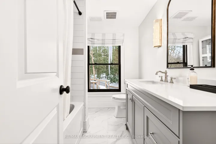 Welcome to 2129 Highview Drive, a beautifully updated five-bedroom family home located in the highly sought-after Highview Survey neighbourhood of Burlington. Offering 4,144 sq ft of living space, this home blends an English cottage aesthetic with timeless sophistication, creating a warm and inviting retreat just 10 minutes from downtown Burlington and the lakefront. Featuring hardwood floors, spacious principal rooms, and multiple walkouts, the home is ideal for both everyday living and entertaining. The updated kitchen with high-end appliances opens to a bright sunroom overlooking the private backyard. A rare main-floor primary suite offers a lounging area and a luxurious ensuite with glass shower, heated floors, and ensuite laundry. The finished lower level includes a cozy family room with fireplace, glass-walled gym, kitchenette area with built-in bar, 3-piece bathroom, second laundry, and a walk-up to the pool area. The backyard is a private oasis with multi-tier decking, patio, landscape lighting, and an inground concrete pool, surrounded by mature trees and nature. A perfect blend of comfort, charm, and Muskoka-style living in one of Burlington’s most desirable neighbourhoods. Luxury Certified.
