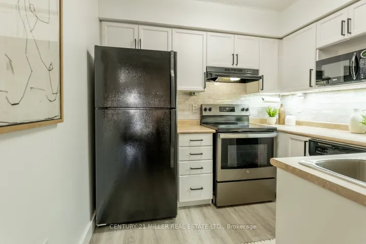 Welcome to one of Milton’s most popular mid-rise condo communities in the highly connected Dempsey neighbourhood. This freshly painted 1-bedroom plus den condo offers 715 sq ft of bright, functional living space with vinyl plank flooring, new semi-flush-mount and LED lighting, and a well-laid-out floor plan that makes everyday life easy. The kitchen is both practical and stylish, featuring a subway tile backsplash, under-cabinet lighting, a peninsula with a breakfast bar, and a convenient microwave shelf. The included GE appliance package includes a refrigerator, built-in dishwasher, and glass top electric range. The bathroom has been upgraded with a new vanity, and the laundry and mechanical closet includes the washer and dryer. Enjoy double glass doors leading to a covered balcony, perfect for year-round barbecuing, plus a storage room for all your seasonal items. A standout feature for this unit is the parking: one owned underground space plus one exclusive surface space, a rare find. Also included is a convenient parking-level locker. Maple Crossing offers a friendly community atmosphere with excellent amenities, including a full gym, party room, visitor parking, an elevator, and a car wash bay in the underground garage. Condo fees include water, building insurance, and amenities. The location is hard to beat: literally 2 minutes to the Highway 401 entrance, close to Milton GO, and surrounded by coffee shops, restaurants, grocery stores, parks and everyday essentials. Whether you’re a first-time buyer, downsizer, or investor, this is one of the best, most convenient condo locations in town. An added bonus for Buyers: the Seller is offering a $5,000 credit on closing