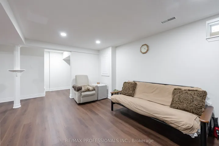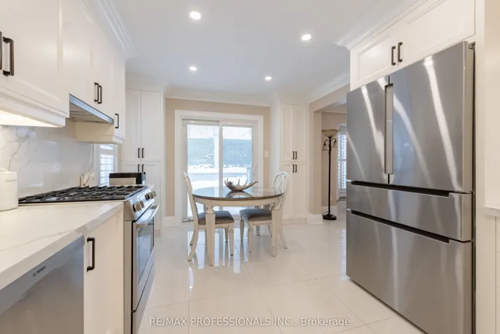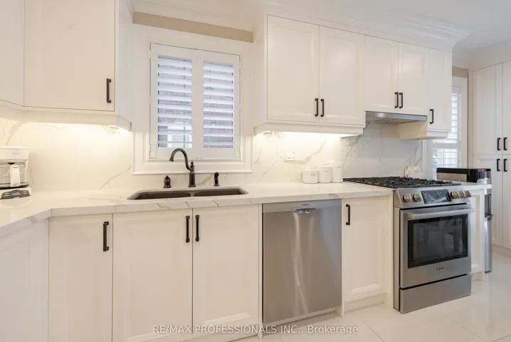 Turn-key/newly renovated *end unit/ freehold townhouse in desirable neighbourhood with 3 car parking. This unique, all-brick townhouse features an excellent layout with functional living space- no wasted square footage, and widens to 34 Feet! – must see* The main floor was completely renovated in 2022, featuring an open concept kitchen/ living area. 24″ porcelain tile flooring throughout, Quartz countertops + backsplash with large island with breakfast nook, high quality/custom *Bespoke kitchen- with dovetailed birch plywood cabinetry*, all Bosch appliances (+gas range), new trim and crown moulding, new staircase and bannister, new front and back door, new powder room, pot lights, california shutters throughout with large bay window overlooking yard. *New electrical on main and lower level + much more! Upper level features 3 great size bedrooms with large closets. Primary bedroom features semi-ensuite access to the main 4 piece washroom. The lower level is equipped with brand new/durable (2025) *luxury vinyl flooring throughout, new stair cap + risers, new pot-lights and freshly painted, large closet/storage areas, laundry room + cold room under porch. The exterior upgrades include concrete pad walkway (2023) from front to back, custom deck (2020), and enclosed front porch (2022), private 3 car length driveway + more. Excellent location in a family friendly neighbourhood & great school district. Easy /walking access to many amenities featuring grocery, eateries, pharmacy, walk-in clinic, parks and more. Quick access to highway and transit* – Move in and enjoy!