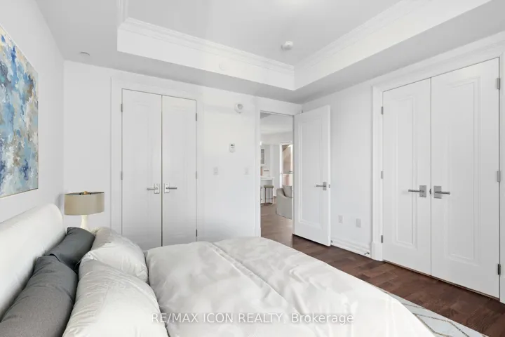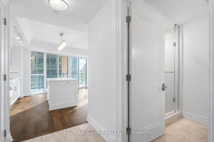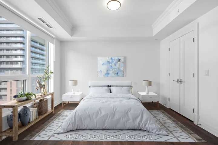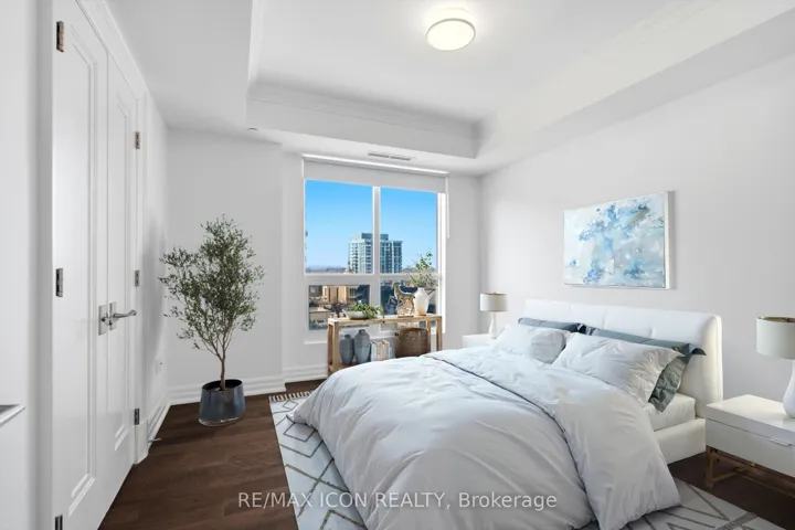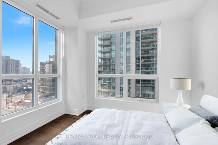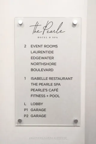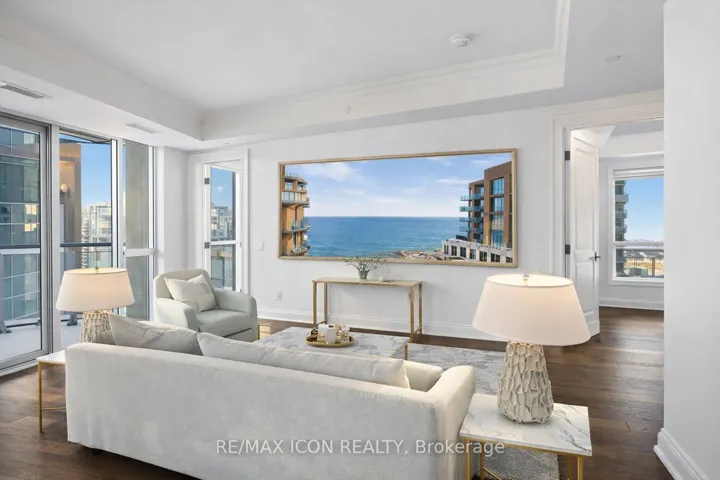 Rarely offered northwest corner suite at Bridgewater Residences on the Lake, Burlington’s premier waterfront address, directly connected to The Pearle Hotel & Spa, a Marriott Autograph Collection property. Designed by renowned interior designer Brian Gluckstein, this exceptional 2 bedroom, 2 bathroom residence offers refined lakeside living with timeless elegance and contemporary style.Featuring high ceilings, floor to ceiling windows, and warm afternoon sunlight, this rare corner suite captures two stunning vantage points. Enjoy sparkling southwest views across Burlington’s waterfront and Lake Ontario, while the northwest exposure overlooks Lakeshore Road and the vibrant downtown core. The suite also captures charming courtyard views and the lively atmosphere of the patio at Isabelle Restaurant, adding a unique urban energy to the serene lakefront setting.Luxury finishes include engineered hardwood flooring, natural stone and porcelain tile, quartz countertops, tray ceilings, crown moulding, pot lights, Kohler fixtures, custom closet built ins, and custom Barzotti cabinetry with valence lighting. The open concept living and dining area flows seamlessly into a gourmet kitchen featuring built in Thermador appliances and elegant quartz surfaces.The primary ensuite bathroom features heated floors for added comfort. A private balcony with natural gas BBQ hookup extends the living space outdoors. Additional conveniences include in suite laundry, one underground parking space, and a storage locker.Residents enjoy exceptional amenities including a rooftop terrace with BBQs and panoramic lake views, fitness centre, social lounge, and indoor pool, along with access to select facilities at The Pearle Hotel & Spa and direct indoor access to Pearle Café. Steps to Spencer Smith Park, the waterfront trail, boutique shopping, restaurants, and vibrant downtown Burlington.