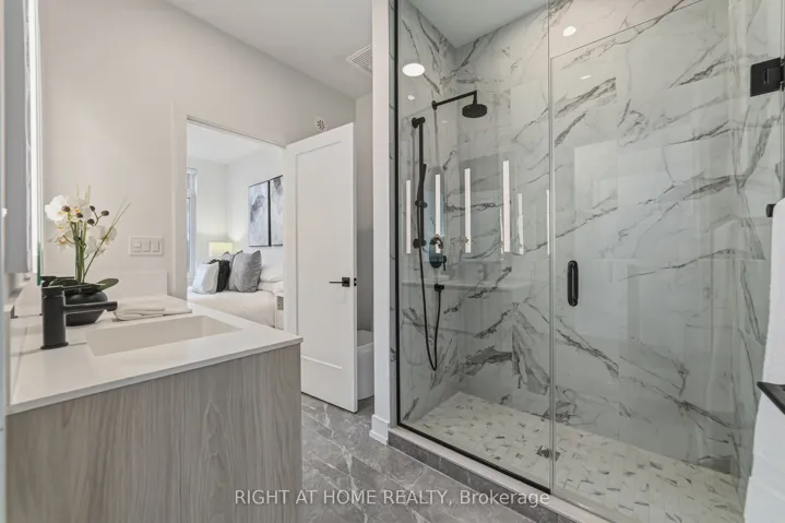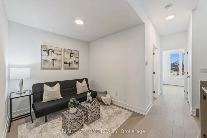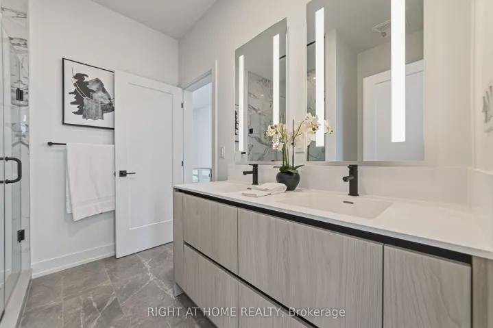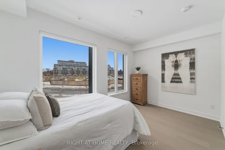 Stunning townhome located in the Brightwater Waterfront Community features a private walk-up and overlooks a large green space, offering enhanced privacy with no direct-facing neighbors. This thoughtfully designed residence showcases 10-ft ceilings on the main level and 9-ft ceilings on the second and third floors, oversized windows, and engineered hardwood flooring throughout, creating a bright and airy living environment. Gourmet kitchen combines style and functionality with premium integrated appliances, including a paneled fridge and dishwasher, a built-in wall oven, and a 5-burner gas cooktop. Quartz countertops with matching backsplash and a striking waterfall island anchor the space. Open-concept living and dining area transitions seamlessly to a spacious outdoor deck and expansive private terrace, perfect for entertaining or everyday enjoyment. Second floor offers two generously sized bedrooms, including one with its own ensuite, a full 4-piece main bath, convenient second-floor laundry. An additional den provides flexibility as a reading room or extra living space. Third floor offers a tranquil primary suite complete with a spa-inspired ensuite. A dedicated home office that opens directly onto a rooftop terrace, ideal space for working from home and enjoying quiet outdoor moments. 3 vehicles via a 2-car tandem garage plus driveway space. An opportunity to be part of the growing Brightwater Port Credit Waterfront Community, a multi-year master-planned neighbourhood featuring acres of open green space, multiple parks, pedestrian-friendly streets, and convenient on-site retail. Residents enjoy an exceptional lakeside lifestyle with walking distance to vibrant downtown Port Credit, waterfront trails, cafés, restaurants, Farm Boy, LCBO, boutique shops, and a resident shuttle to Port Credit GO Station for easy commuting.