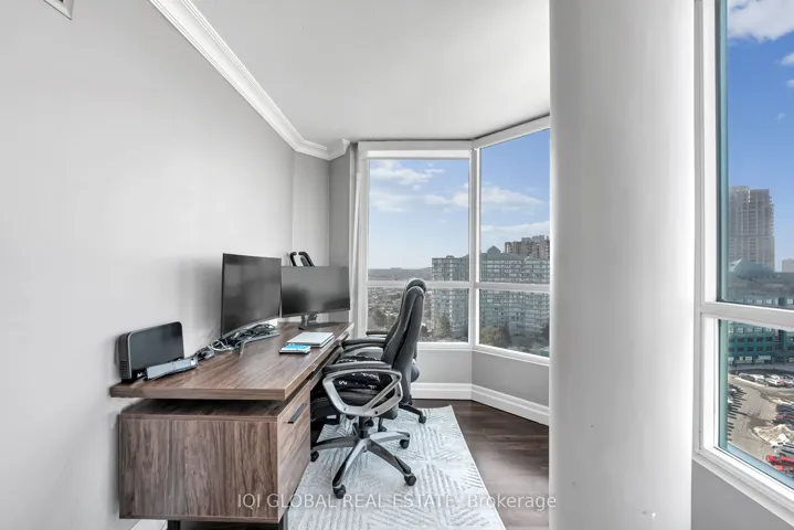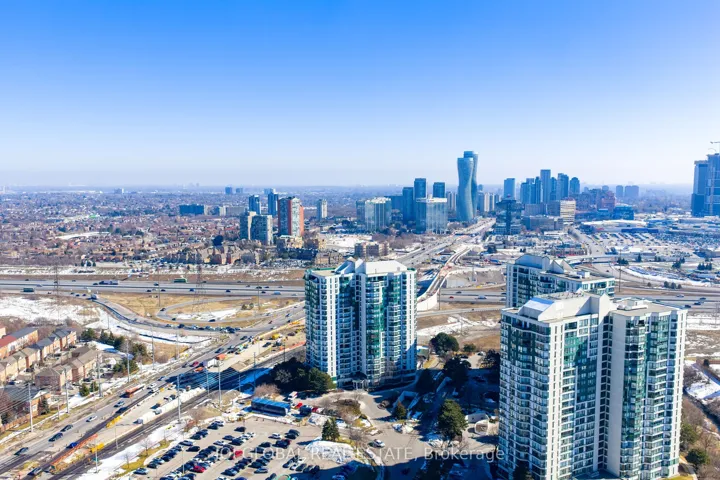 Hard to find in newer builds: a true 2+den layout with this much square footage, expansive panoramic views, and the added bonus of 3 parking spots + 1 locker. Immaculately maintained and beautifully updated, this spacious corner suite offers 1,201 sq ft of bright, functional living space-one of the largest layouts in the building. Enjoy an open-concept design with a separate living and dining area, ideal for entertaining and everyday comfort, plus a versatile den perfect for a home office or flex space-great for a larger family. The renovated chef-inspired kitchen features stainless steel appliances and ample cabinetry. The primary bedroom retreat includes a walk-in closet, large windows, and a 4-piece ensuite, complemented by a generous second bedroom, a full second bathroom, and ensuite laundry. Perched on the 16th floor, a corner unit, you’ll love the bright, unobstructed views from every corner of the unit.Outstanding building amenities include 24-hour security, indoor pool, gym, sauna, squash/tennis courts, billiards room, and visitor parking. Prime location steps to Square One Shopping Centre, transit, GO Bus Terminal, and minutes to Hwys 401/403/407/410/QEW, future LRT, Sheridan College, grocery stores, parks, schools, library, restaurants, and hospital. A rare opportunity for space, views, and convenience in the heart of Mississauga.