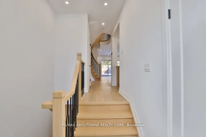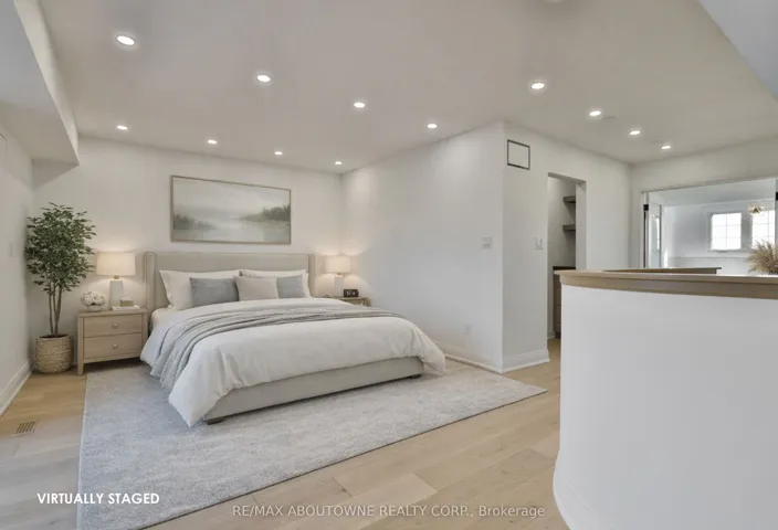 Luxury lakeside living in Bronte’s coveted Schooner’s Reach. Completely reimagined from top to bottom, this exceptional freehold townhome offers nearly 3,000 square feet of beautifully renovated living space just moments from the lake, marina and the vibrant shops and restaurants of Bronte Village. The main level unfolds with wide-plank flooring, expansive sightlines and a stunning redesign of the kitchen and living spaces. The kitchen has been opened and rebuilt with custom cabinetry, quartz surfaces, integrated wall ovens, gas cooktop and striking two-tone finishes that feel both warm and contemporary. Two additional windows were added in the family room to enhance natural light, while a fully rebuilt staircase with hardwood treads and modern railings now acts as an architectural focal point. Extensive pot lighting and thoughtful electrical upgrades further elevate comfort and functionality throughout the home. The second level offers three well-proportioned bedrooms, a beautifully renovated full bath and convenient laundry. Above it all, the entire third floor is dedicated to a remarkable private primary retreat featuring a spacious bedroom, custom dressing space, two walk-in closets, a luxurious five-piece ensuite and its own balcony. A lower-level office, abundant storage, interior access to the double garage and an oversized terrace ideal for outdoor dining and entertaining complete the home. This freehold townhome community offers the convenience of coordinated landscaping, snow removal and seasonal exterior window cleaning without monthly condo fees, a rare opportunity to enjoy the Schooner’s Reach lifestyle in a home that has been entirely transformed.
