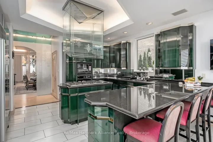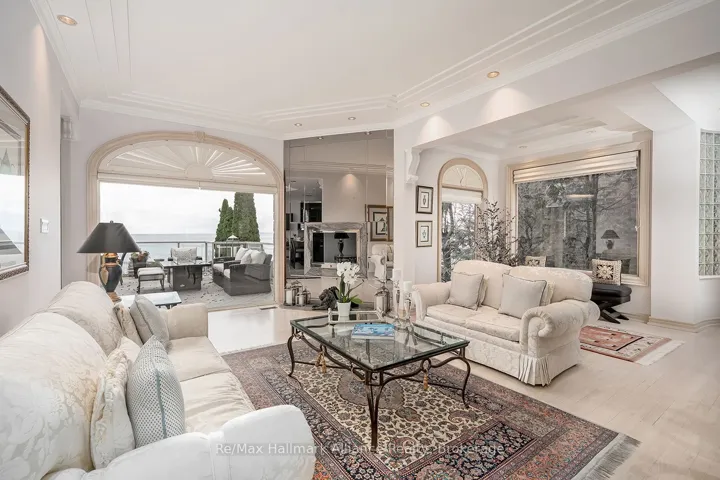 Crafted as the personal residence of a renowned designer, this 5+1 bedroom, 10,000+ sq.ft. waterfront estate is a rare offering in one of Bronte’s most coveted settings. While neighbouring homes were also designed by him, none compare to the scale, craftsmanship, and artistry dedicated to this residence-his own masterpiece. Expansive windows and soaring ceilings flood the home with natural light, framing breathtaking lake views on every level. Multiple balconies and terraces offer front-row views of sunrises, sunsets, and moonlit water-creating a seamless connection to nature from morning to night. Thoughtfully designed for both family living and elegant entertaining, the main level features grand principal rooms, multiple gas fireplaces, formal and informal living spaces, and a gourmet kitchen with walkout to the lakeside terrace. Each level offers outdoor retreats – private balconies off bedrooms, and expansive terraces perfect for gatherings. The upper level includes generously sized bedrooms, including a luxurious primary suite with private balcony, spa-like ensuite, and unobstructed views of the lake. A full lower level adds an additional bedroom, recreation spaces, gym, and walkout access. Set on a quiet street with a strong sense of community, this home offers a rare blend of privacy and connection. The saltwater pool, manicured grounds, and lakeside setting make every day feel like a peaceful escape. Minutes to Bronte Harbour, boutique shops, trails, parks, and top-rated schools-this residence is more than a home; it is a lifestyle on the water.