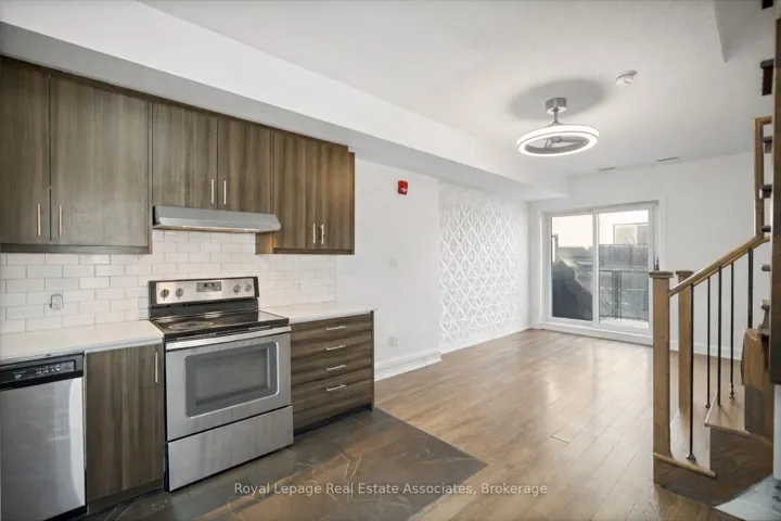 End unit 3-storey townhome offering 3 bedrooms, 3 bathrooms, and 1,334 sq ft of living space. The sun-filled open concept main floor features 9′ ceilings and a bright, functional layout. The kitchen includes stainless steel appliances and a convenient nook for additional counter space and storage. The home has been freshly painted and features hardwood floor & tile throughout. The primary bedroom includes a walk-in closet and a fully renovated 4-piece ensuite, while the second and third bedrooms offer flexible space for family, guests, or a home office. Additional features include underground parking, locker and maintenance fees that cover: water, garbage removal, window cleaning, snow removal, and landscaping. Conveniently located near the UP Express and with quick access to Highways 401 and 400.
