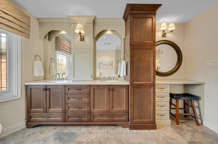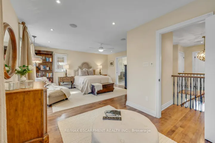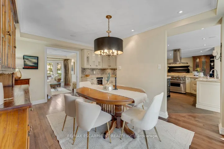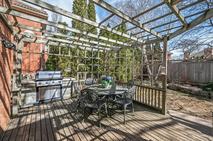 Welcome to this beautifully maintained home in the highly desirable Eastlake community in southeast Oakville. Designed for comfortable family living and effortless entertaining, this inviting home offers three bedrooms, three bathrooms, gleaming hardwood floors, and a spacious foyer that creates an immediate sense of warmth and elegance. The living and dining area features pocket doors that provide flexibility for entertaining or enjoying quiet evenings at home. At the heart of the home is a thoughtfully designed kitchen with abundant cabinetry, quartz countertops, and high-end appliances. A generous breakfast bar is perfect for morning coffee, casual meals, or after school conversations. The kitchen flows seamlessly into the family room where a wood burning fireplace adds charm and comfort while offering direct access to the private backyard. The main floor also includes a powder room and convenient laundry room. Upstairs a graceful staircase leads to a spacious primary suite designed as a peaceful retreat with a dressing area, built in closets, and a bright sitting nook perfect for reading or a quiet start to the day. The 5 piece ensuite includes dual sinks, a makeup vanity, a glass shower, and a deep soaker tub for relaxing at the end of the day. Two additional bedrooms and a full bath complete this level along with a large flexible room with a gas fireplace that can serve as a media room, home office, or family lounge. The lower level expands the living space with a recreation room, two versatile rooms, storage and a utility area. Outside, a tranquil backyard features a sunlit deck, well kept landscaping, lit privacy screens, shed, built in gas BBQ and a child and pet friendly play area. Located in the sought after Eastlake community, this home is surrounded by mature tree lined streets and generous lots and offers close proximity to excellent schools, parks, waterfront trails, boutique shopping, and convenient commuter routes to downtown Oakville and beyond.