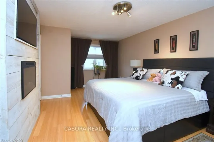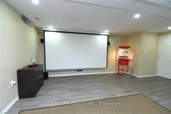 This magnificent townhome offers features normally found in far more expensive home. Open concept main level with hardwood floors, built-ins to house stereo and tv components (TV is included). Patio door to full deck with natural gas connection for barbeque. Gas stove in kitchen (electric connection also available). The upper level also offer hardwood throughout, including the open office area and 3 generous bedrooms. The primary bedroom includes a full ensuite and walk-in closet plus an electric fireplace and tv upgrade. The second bedroom offers a built-in desk and gaming table that allows for a comprehensive system setup. TV’s in all three bedrooms are included. The entire family will enjoy the lower level which is fully finished with a 3 piece bathroom, and Home Theatre with roll down screen, surround sound and built-in bar.