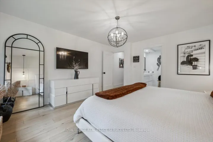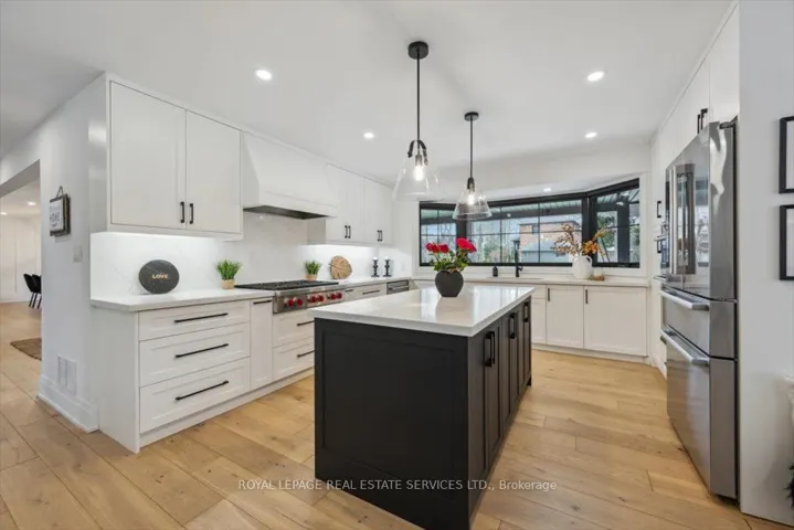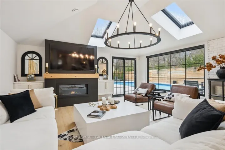 Absolutely gorgeous Modern farmhouse Masterpiece in the heart of Mineola! This charming fully renovated 5 bed 4 bath home nestled on a prestigious 90 x 200 mature lot on a quiet street offers everything you desire. A charming front porch provides for great curb appeal. Enter through the front door into a spacious foyer with custom built in closets & ship lap feature wall. Enjoy entertaining in the expansive sun-filled main level featuring a MAIN FLOOR PRIMARY bedroom with a spa inspired ensuite. Wide plank engineered naked white oak flooring flows throughout, a breathtaking chef’s kitchen with custom cabinetry, Wolf 6 burner range, high end stainless steel appliances, quartz counter tops and backsplash, a large prep island and a second island dining table with barstool seating. The kitchen is open to a stunning family room with vaulted ceilings and vented skylights , gas fireplace with floor to ceiling porcelain surround and custom built-ins. Walkout from both kitchen and family room to unwind in a spectacular private, professionally landscaped resort style backyard oasis featuring a concrete salt water pool, large paver patio, fire pit area and lush perennial gardens. Take the solid oak, open riser staircase to the second floor where hardwood flooring continues through 4spacious bedrooms. Bedrooms 2 & 3 feature vaulted ceilings and feature walls. A gorgeous 4piece bath with a custom glass shower completes the second level. The fully finished lower level is designed for comfort and functionality offering a comfy rec room with ship lap feature wall and built-in electric fireplace, wide plank premium vinyl flooring, 3 piece bath, laundry room with custom cabinetry, & a sauna. This extraordinary home blends thoughtful design with top-tier finishes, all in one of Mississauga’s most sought-after neighbourhoods. This is more than just a house, it’s a meticulously maintained retreat, pride of ownership is obvious. Don’t miss the opportunity to make it yours!