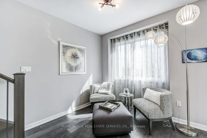 End Unit Sun Filled 4 Bedrooms 3+1 Baths Double Car Garage Upgraded Kitchen Large Deck Rare opportunity to own a beautifully upgraded sun-filled end-unit townhome offering extra windows, added privacy and exceptional natural light throughout. Welcoming foyer with upgraded ceramic tile entry leads to elegant oak staircase with rod pickets connecting all three finished levels. Main floor features a versatile 4th bedroom with hardwood floors, custom window treatments, large walk-in closet and private 4-pc ensuite, perfect for guests, in-laws or home office. Convenient main floor laundry with Samsung washer & dryer, laundry sink and upper cabinetry. Second level designed for entertaining and everyday living. Upgraded kitchen with quality cabinetry, upgraded countertops, built-in microwave, stainless steel fridge, stove and dishwasher, custom built-ins including coffee station and large walk-in pantry. Spacious eat-in kitchen and breakfast area with walkout to large deck, ideal for BBQs, outdoor dining and relaxing. Kitchen overlooks bright family room with hardwood floors and smooth ceilings throughout. Separate formal dining room with large windows and custom window treatments plus adjoining sitting area provide excellent entertaining space. Third level features the private sleeping quarters. Double door entry to primary retreat with hardwood floors, walk-in closet and upgraded ensuite with oval soaking tub, walk-in shower and stone counter vanity. Bedrooms 2 and 3 offer upgraded broadloom, custom window treatments and large closets. Additional highlights include 3 full baths and 1 powder room, double car garage, upgraded kitchen cabinetry with extended pantry storage, elegant oak staircases, custom window treatments throughout, and large entertaining deck off kitchen creating seamless indoor/outdoor living. End-unit design provides exceptional natural light and added privacy. BONUS: 200 amp panel in Garage can accept a car charger. Smooth 9ft ceilings.