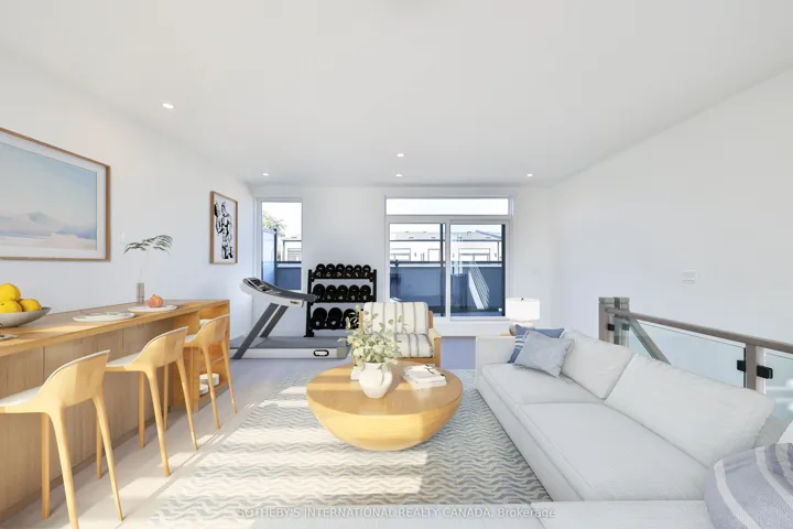 Discover the epitome of waterfront luxury in this exquisite lake-facing townhome, perfectly positioned within the coveted Brightwater community. Offering nearly 2,400 sf of masterfully designed living space, this residence exudes sophistication and modern refinement, complemented by breathtaking views of Lake Ontario. The light-filled main level features an open-concept layout framed by floor-to-ceiling windows, custom hardwood flooring and anchored by a chef-inspired kitchen appointed with premium Bosch appliances, custom cabinetry, and elegant finishes throughout. The expansive primary suite presents panoramic lake views, a spa-like ensuite, and an elevated sense of tranquility. Two additional bedrooms offer refined comfort for family or guests, enhanced by custom hardwood flooring and meticulous craftsmanship at every turn. The third floor presents a versatile space for exercise or entertainment, flowing seamlessly onto a private outdoor terrace. The private rooftop terrace provides a spectacular setting for entertaining or quiet reflection, showcasing sweeping views of the lake and horizon. A double-car garage and parking for five vehicles offer convenience rarely found in such an exclusive waterfront residence. Experience the best of lakeside living, steps from boutique shops, acclaimed restaurants, scenic trails, and just minutes from downtown Toronto. The Brightwater embodies a lifestyle of elegance, distinction, and enduring value in one of the GTA’s most desirable waterfront communities.