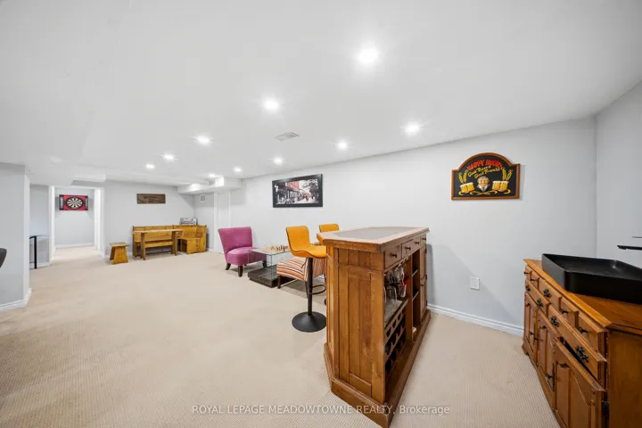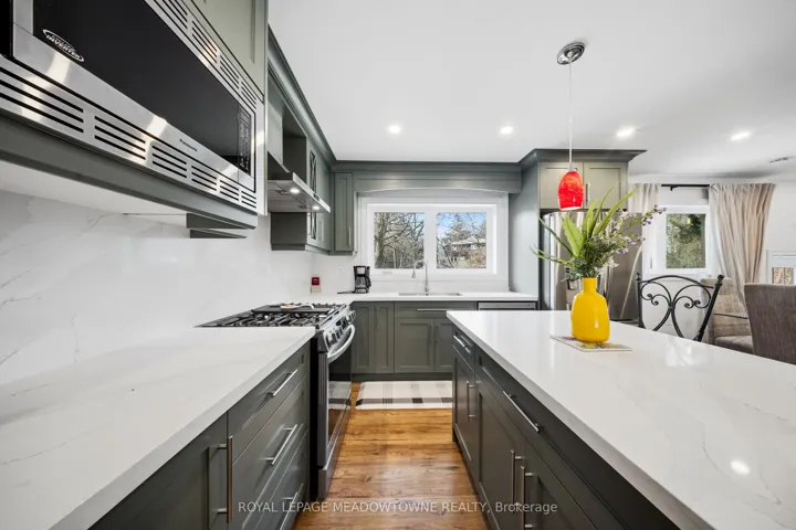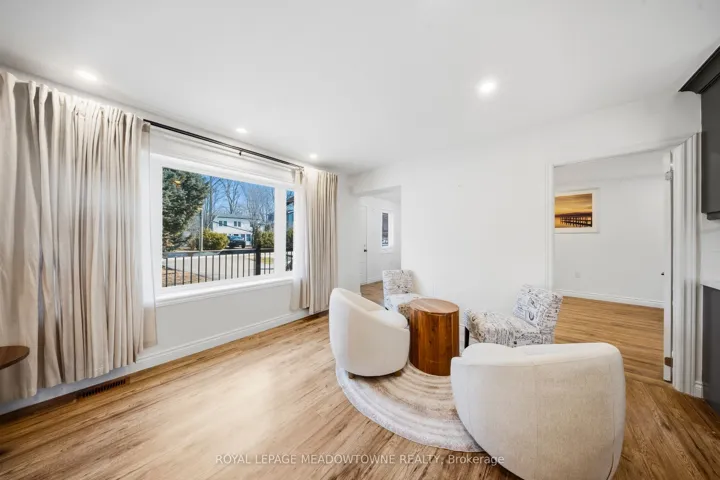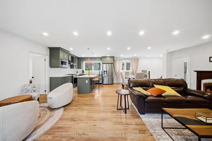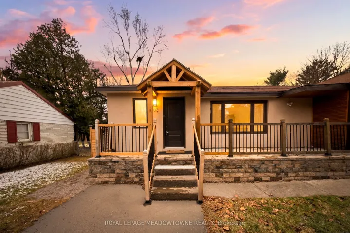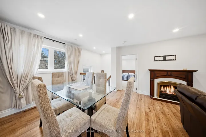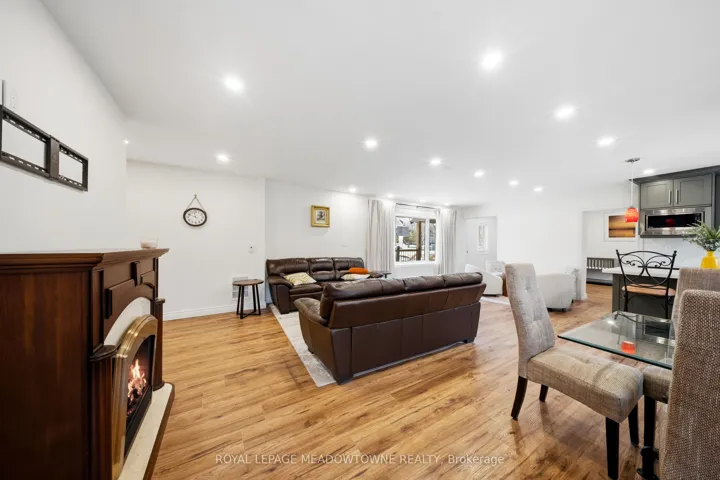 Beautifully renovated bungalow in prestigious community of Oakville. A private foyer welcomes you into the open-concept main living space, featuring a custom kitchen with quartz countertops and backsplash, centre island, and high-end stainless steel appliances. The kitchen overlooks the bright living and dining areas, highlighted by large windows and pot lights. The primary bedroom offers a walk-in closet and a private ensuite bathroom. Two additional bedrooms and a full bathroom complete the main level. The finished basement features a spacious recreation room with wet bar, pot lights, bright windows, and a second fireplace. A bonus bedroom, 3-piece bathroom, and finished laundry room add functionality and flexibility to the space. Enjoy the private backyard with a large patio and gazebo, surrounded by mature trees and backing onto a wooded ravine for added privacy.