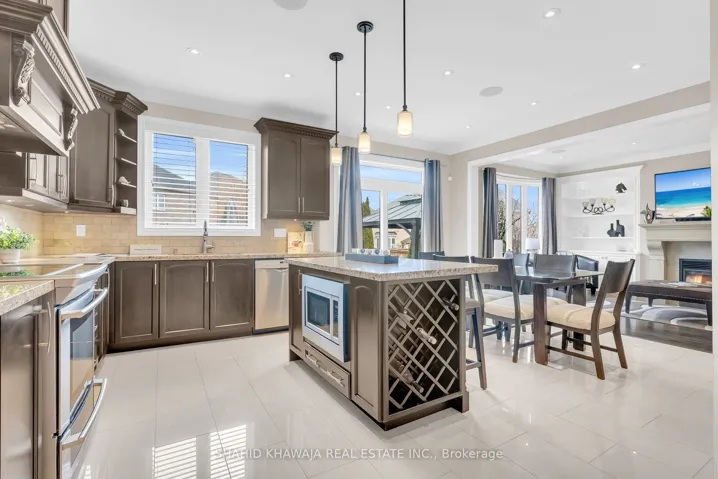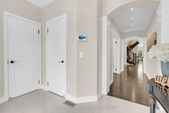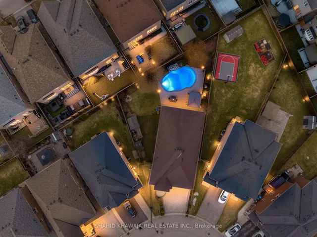 *View Virtual Tour* Welcome to this exceptionally beautiful & upgraded home set on a rare pie-shaped lot with 104ft width from the back ** Stunning backyard oasis offering a swimming pool with armour stone waterfall. Impressive curb appeal & sidewalk-free interlocked driveway complemented by elegant stone front steps & a striking new 8ft front door with a 3-point locking system, & a walkway leading to side entrance. A grand welcoming foyer showcases premium finishes including hardwood flooring throughout, porcelain tiles, crown moulding, 6-inch baseboards, & over 100 interior/exterior pot lights. The thoughtfully designed main floor offers both elegance & functionality, ft. a private library, formal dining room, spacious living room, an inviting family room ft. a beautiful stone fireplace. The custom kitchen is designed for everyday living & entertaining, complete with a servery connecting to the dining room, while the breakfast area offers w/o access to the beautifully landscaped backyard. Enjoy exceptional outdoor living with a gazebo, backyard lighting, irrigation system, two large garden sheds and approx. 900sqft of backyard interlocking, Custom built-in surround sound speakers throughout the home & backyard enhance both comfort & entertainment. The second floor offers five spacious bedrooms & a gallery overlooking the spiral staircase. The primary retreat offers a large walk-in closet & a luxurious 5-piece spa-inspired ensuite. Bedrooms 2 & 3 share a jack & jill bathroom, while bedrooms 4 & 5 share another jack & jill bathroom, each with their own walk-in closets. Additional highlights include 2nd flr laundry room, central vacuum, a brand new patio door, a 200 amp electrical panel, & a side entrance leading to the basement, with excellent future potential. Ideally located close to parks, schools, shopping, restaurants, & everyday amenities, with convenient access to Highways 410/401, & public transit, making commuting & daily living exceptionally convenient.