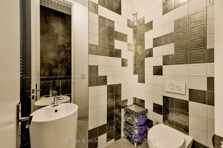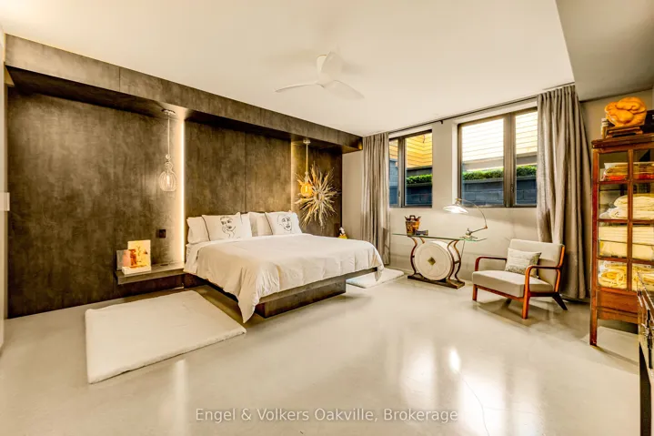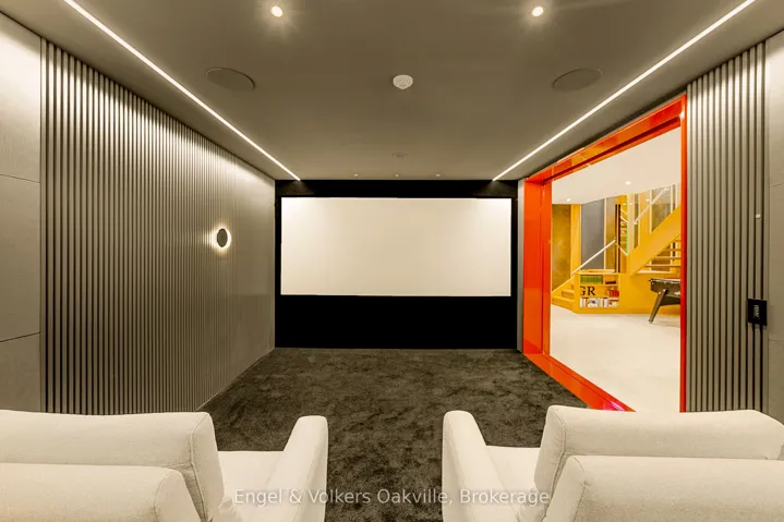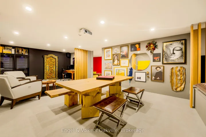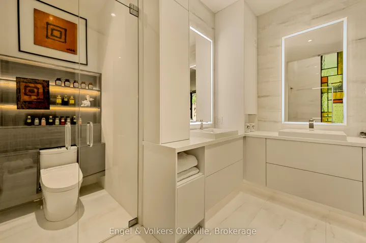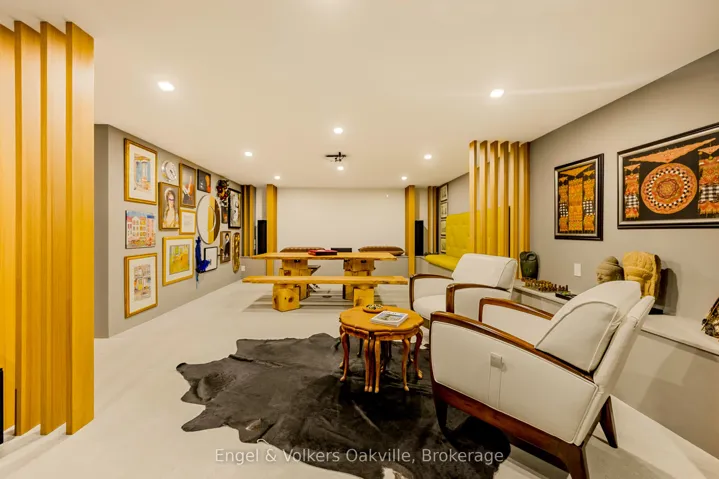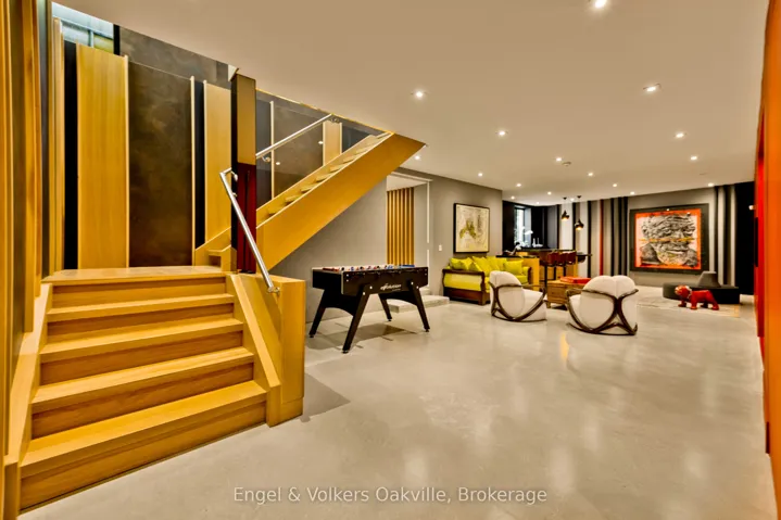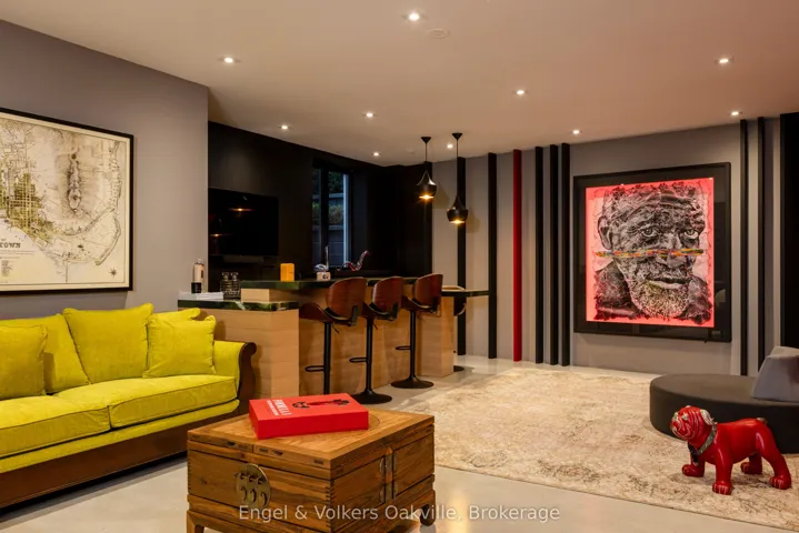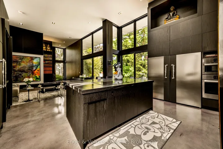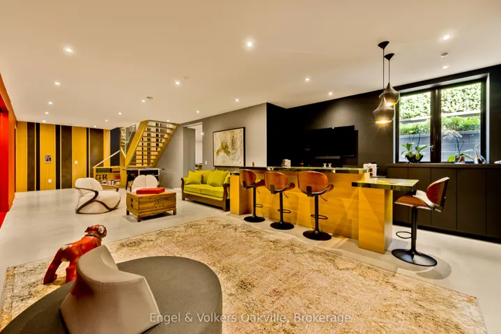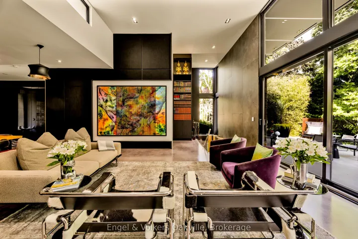 This bold “Jewel-Box” design bungalow in SE Oakville epitomizes the concept of “Home as a Gallery” where architecture & décor blend to create high drama, unparalleled luxury w fully integrated Smart-Home technology. Almost 5,000 sqft. w 3+1 beds & 4 baths.15 ft floor to ceiling glass erase the boundary between the living rm & rear deck creating another complete living space, extending to hardscaping, lighting, & landscaping in the ultra-private rear yard. Striking hallways transition to dramatic principal rooms. Radiant heated concrete floors t/o provide comfort, while high-end custom cabinetry make a sleek minimalist vibe. An eclectic chef’s kitchen w top-tier appliances, double ovens, a barista station, & unique wet bar w chilled sparkling & flat water accents the open concept living & dining rms. The luxurious primary offers views to a bamboo court & outdoor gas FP, custom built-in closets, & ens w soaker tub, Toto wash-let toilet w flr to ceiling stained-glass. The office & dressing rm can be converted to bdrms (w rough-in bath). The lower level emphasizes entertainment, w open-con games area, wet bar w granite counters & dishwasher, tiered theatre with 10′ screen & full surround sound, versatile fam room/den, guest bedrm w 3-pce ens, laundry, & utility rm. For convenience, an elevator to all levels, including rooftop patio. The over-sized 2 car garage w EV charger has access to large mud-room w dog washing & garbage/recycling chute. Beyond the luxurious finishes, one must also appreciate the complete “Smart-Home” integration. For ease – seamless control of Sonos sound sys thru b/i speakers in & out, climate control, lighting, & security. For efficiency – individual room sensors for climate & lighting when vacant. For low maintenance – faux turf means no lawn cutting, & a snow melt system for the drive & walkways + the rear patio, w heat mode for outdoors when cool. Finally, for peace of mind – retractable exterior steel security blinds at the touch of a button.