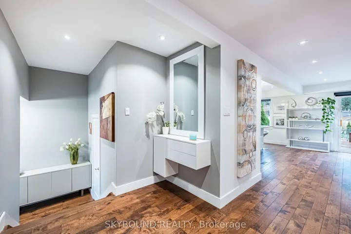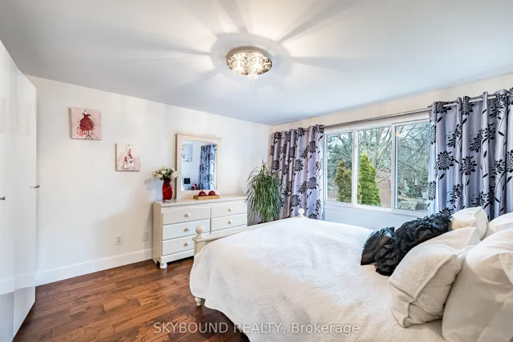 BIGGER THAN IT LOOKS TRULY UNIQUE FAMILY HOME with RARE 2 CAR GARAGE. Located on a peaceful dead end, family oriented street near Windwood Park in the heart of Mississauga. Steps to park, public transit, schools, shops. Renovated with Elegance, Style and High Quality Finishing. The front entrance opens to the foyer and convenient 2-piece powder room. At the heart of the home lies a stunning open-concept kitchen/ living/ dining room with large windows that flood the space with natural light, hand scraped white oak hardwood floors and walkout to generous deck overlooking private backyard oasis. Ideal space for hosting. Discover fully renovated kitchen featuring white cabinets, pot drawers, oversized island, pantry, quartz counters, display cabinet, stainless-steel appliances. See Through modern glass hardwood staircase design leads to cozy family room complete with gas fireplace, reclaimed wood beam, barn door and casing around the skylights. Large window finished with hand scraped red oak casing. Perfect and inviting space to relax. Upstairs 3 spacious bedrooms. Primary bedroom complete with expanded 3-pc luxury spa-inspired bathroom with glass enclosed shower and stylish make up vanity desk. The basement offers a recreation room with engineered hardwood floor, pot lights, finished laundry room, workshop plus ample storage. The spacious and fully fenced yard is landscaped with privacy in mind. Mature evergreens, perennial bushes and flowers provide everything needed for outdoor entertainment or quiet coffee to start your day.