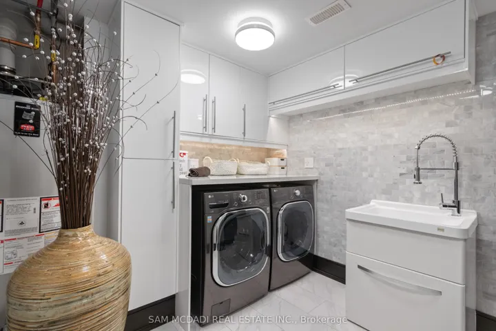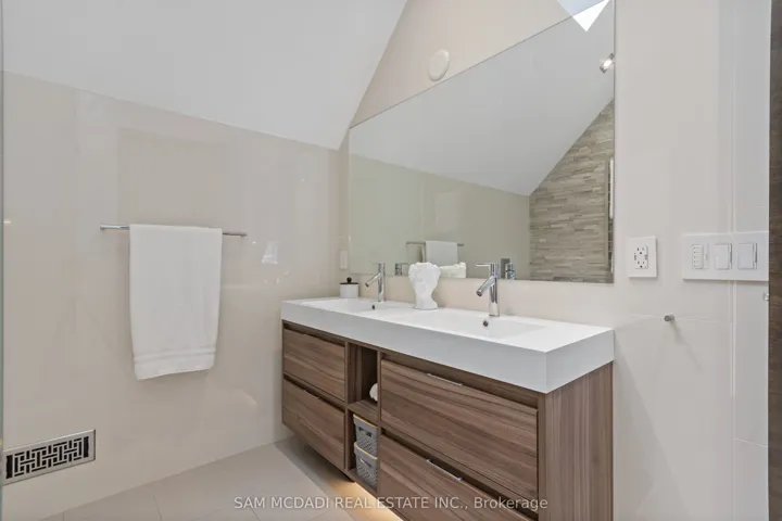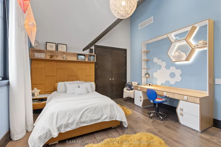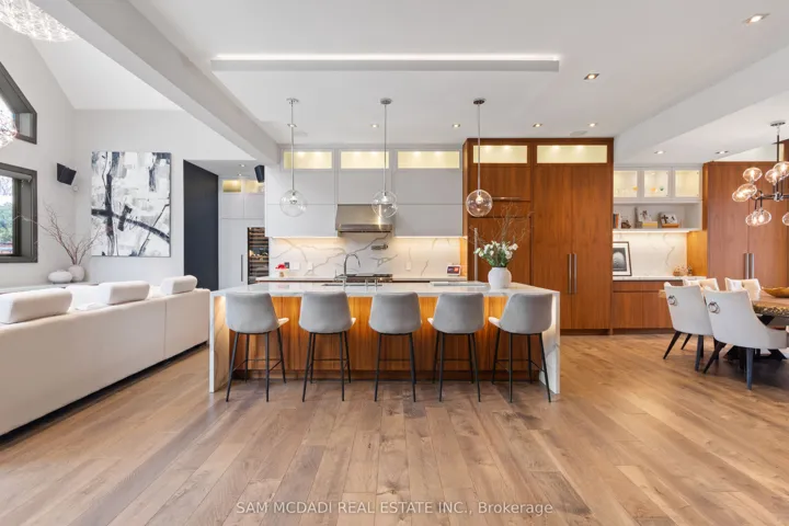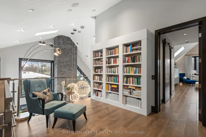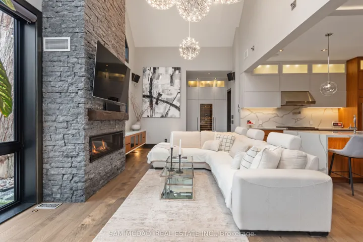 Set in the sought-after Clarkson community of South Mississauga, this striking custom residence offers over 5,500 SF of luxurious living space with architectural elements and lifestyle amenities designed for the discerning buyer.Thoughtfully designed, the home showcases dramatic ceiling heights, skylights, expansive windows, B/I speakers and rich hand-scraped maple hardwood flooring throughout. Upon entry, the home unfolds into an impressive open living space defined by a soaring double-height ceiling and floor-to-ceiling stone fireplace, creating a stunning focal point filled with natural light. Designed for both everyday living and entertaining, the chef-inspired kitchen features a large Calacatta marble waterfall island, premium built-in appliances and a beautifully appointed butler’s pantry w/ heated floors and convenient garage access. Above, a sunlit loft w/ custom built-ins overlooks the living space below, offering a quiet retreat for reading or work beneath the skylights. The primary suite is elevated by vaulted ceilings w/ exposed beams, a private sitting area and a two-way fireplace shared w/ the spa-inspired ensuite featuring a freestanding tub, glass shower and walk-in dressing room. Two additional bedrooms on this level offer bright, well-proportioned spaces with the same attention to details, while a main floor bedroom w/ walk-in closet and ensuite provides the ideal guest suite. The lower level completes the home with spaces tailored for recreation and gathering, including a theatre lounge, games area, custom wet bar, wine cellar and full bath, all wrapped in warm textures of brick, stone and wood. Outdoors, the private backyard extends the entertaining experience w/ a covered lounge, outdoor service bar, built-in BBQ, hot tub and generous deck space designed for relaxed evenings and summer gatherings. Situated minutes from Lake Ontario waterfront parks, Rattray Marsh trails, Clarkson GO, Clarkson Village shops and dining, and top-ranked schools.