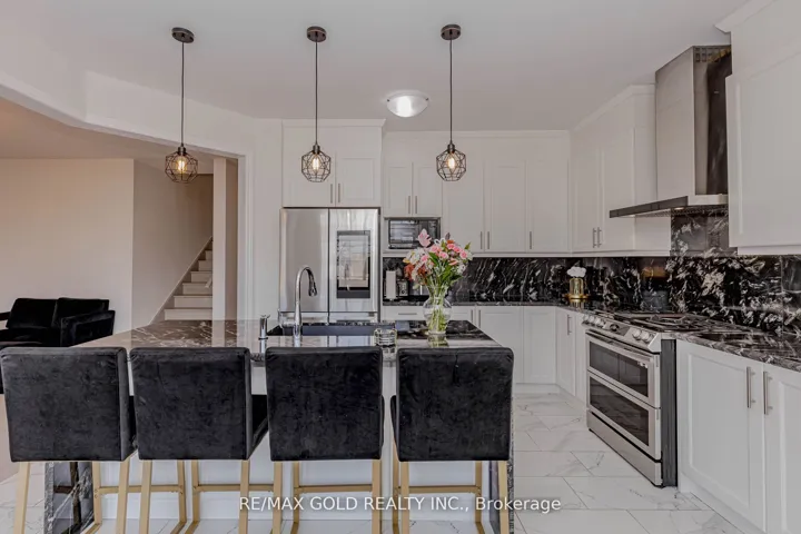 Luxury living awaits in this exceptional Georgetown home featuring a striking stone and brick exterior and an impressive double-door entry. Less than five years old, this beautifully upgraded residence offers approximately 2,250 sq. ft. of thoughtfully designed living space (as per builder floor plan), combining modern style with everyday comfort. The chef-inspired kitchen is the heart of the home, showcasing granite countertops and matching backsplash, a waterfall island, stainless steel appliances, and ample cabinetry. The kitchen flows seamlessly into a bright breakfast area, ideal for family gatherings and entertaining. Upgraded hardwood flooring enhances the living and family rooms, which are centered around a cozy gas fireplace. Nine-foot ceilings on the main floor create a bright, open atmosphere, while convenient main-floor laundry adds functionality. Upstairs, the primary suite offers a private retreat with his-and-hers walk-in closets and a spa-like 4-piece ensuite featuring a soaker tub, glass shower, and double sinks. Each additional bedroom includes its own walk-in closet and ensuite bathroom. With over $100,000 in builder upgrades, a basement with large lookout windows, no rear neighbours, and a prime location close to schools, parks, shopping, and amenities, this home offers luxury, privacy, and exceptional value.