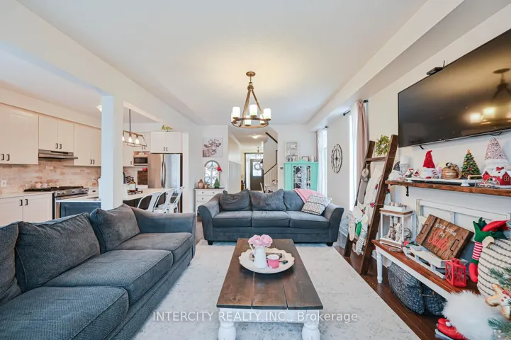 Exceptional executive end-unit 4-bedroom townhouse situated on a quiet, upscale cul-de-sac in sought-after Caledon East. This fully finished home offers approximately 1,974 sq. ft. of refined living space and an elegant open-concept design. The eat-in kitchen features quartz countertops, a centre island, and stainless steel appliances, seamlessly overlooking the family and dining areas-ideal for entertaining. Highlights of the main level include gleaming hardwood floors, a 2-piece bath, 9-foot ceilings, and direct access to the garage.The spacious primary suite is a private retreat, complete with a walk-in closet and a luxurious ensuite with a walk-in shower and built-in tub. Three additional well-appointed bedrooms, a 4-piece main bath, and a convenient upper-level laundry area complete the second floor.The professionally finished basement offers a large recreation room with a kitchenette with wet bar. Enjoy the gorgeous, fully fenced backyard featuring a extra side-yard space, and backintranquil greenspace/conservation lands. Ideally located in the heart of Caledon, just steps to schools, a community centre, and the public library-offering the perfect blend of luxury and convenience in one of the area’s most desirable neighborhoods