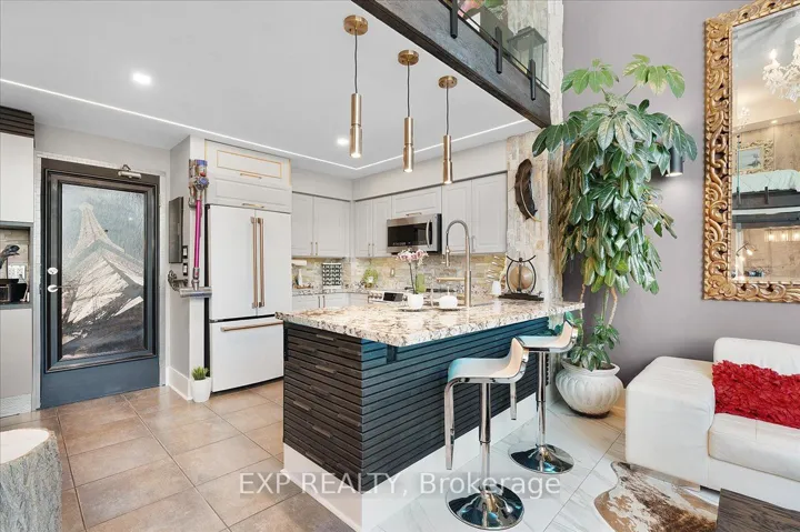 Live the loft life! You want bold, bright & unique, Welcome to this rarely offered fully transformed NYC style Hard-Loft perched on the PH-level of MYSTIC POINTE lofts in Mimico. Formally the Mc Ginness Distillery this 2-story with 17′ ceiling height showpiece blends industrial charm with modern luxury. Offering over +1200ft of brilliantly redesigned floor plan living space south facing Floor-Ceiling windows. and 1 of only a handful of Lakeview units in the building, this sun drench space was crafted to impress & entertain. Professionally reimagined by interior designer, it features 3 spacious bedrooms, 2-spa inspired bathrooms, sleek open riser stairs, dramatic glass railings, and hidden wall appliances, lighting accents that elevate every corner, the chef’s kitchen boast a large eating island, ultra modern wall & ceiling lighting thr/o. A massive walk-in closet enough to support any shoe enthusiast, lots of storage, gas fireplace and a massive ceiling fan adds to its character. **Parking with attached Locker behind it, conveniently located on the same floor as the unit (so no elevator needed for groceries!) Perfect for style forward couple or remote working professional who value and crave ample space, bright and a bold design statement with luxury in mind. Seller is RREA. Fully updated in 2025…Even brand new furnace and AC