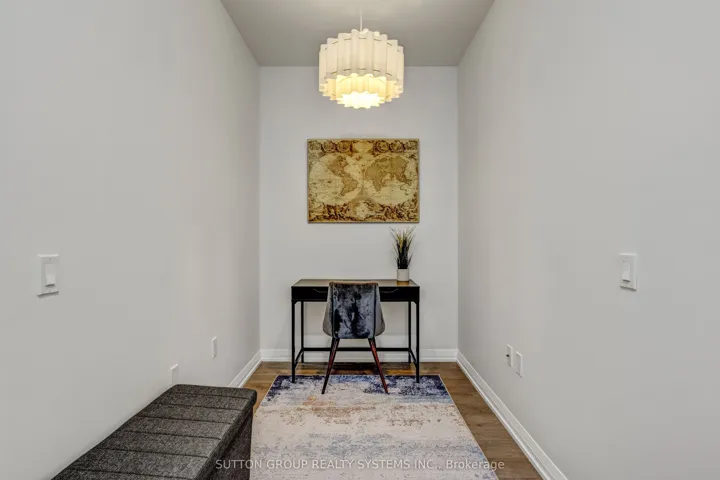 Absolutely gorgeous 5-year-old 1+ den spacious unit at Hurontario and Eglinton in a highly sought-after Mississauga community by Pinnacle! This efficient floor plan features a separate den that can function as a second bedroom or office. The modern kitchen boasts white peninsula cabinetry, stainless steel appliances, a lazy Susan, pot drawers, quartz countertops, ceramic backsplash, and under-cabinet lighting-all overlooking the living and dining areas for an open, airy feel. The master bedroom includes a massive walk-in closet, and the home is finished with luxurious touches throughout: floor-to-ceiling windows, laminate flooring, and a designer vanity. Set within a master-planned community with 15 acres of parkland and steps from the future LRT, this home offers world-class, hotel-like amenities: 24-hour concierge, indoor pool and hot tub, fully equipped fitness room, serene yoga studio, party room with kitchenette, kids’ play area, library, and outdoor terrace. Comes with 1 parking spot and 1 locker.