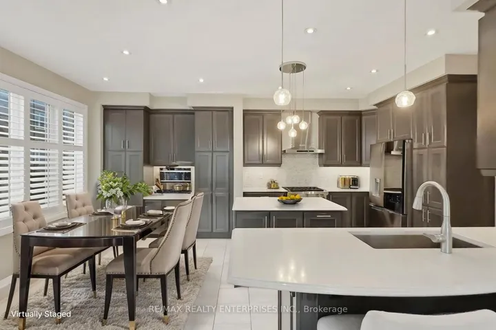 Situated on a premium corner lot in one of Oakville’s most coveted enclaves, 355 Wisteria Way is a masterclass in transitional design and functional luxury. This 4+1 bedroom, 4.5 bathroom is curated for the family that refuses to compromise on quality or location. The crown jewel of this location is its proximity to Oodenawi Public School, a top-tier consistently ranked among Ontario’s best. For parents, this is the ultimate lifestyle upgrade, close enough to watch your children walk to the front doors from your own porch, yet uniquely positioned so you do not back onto the school grounds. You enjoy the prestige of a 2-minute walk without the noise of a schoolyard directly behind your fence. The interior offers a light-filled floor plan with 9′ ceilings, rich hardwoods, and designer pot lighting. A dedicated main-floor office provides a quiet sanctuary, while a custom mudroom with bespoke built-ins ensures effortless organization. The chef’s kitchen is a showstopper, outfitted with a professional Wolf gas range, Miele appliances, sleek quartz counters, and custom cabinetry flowing into a sun-drenched eat-in area.The upper level is an oasis of comfort. The Principal Suite features a boutique hotel feel with a spa-style 5-piece ensuite, heated towel racks, and a deep soaker tub. With a Jack & Jill bath for bedrooms two and three and a 4th bathroom for the 4th bedroom, morning routines are streamlined. The 2018 basement renovation is a game-changer; soundproofed with Rockwool Safe’n’Sound, it features a massive recreation room, sleek bar, and a 5th bedroom/nanny suite. The backyard features an expansive stone patio and a stunning architectural pergola. Equipped with integrated heaters and electrical, this space allows for true three season entertaining. Complete with an EV-ready garage and steps from protected trails and the hospital, this is the definitive upgrade for the modern family.