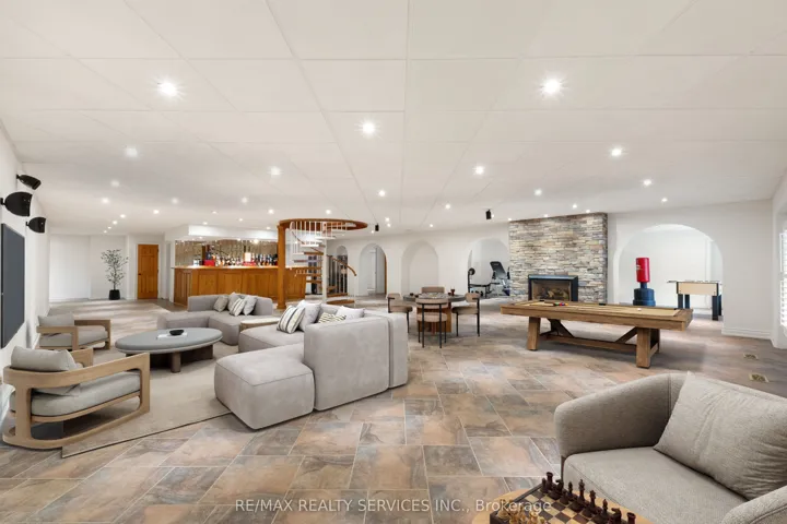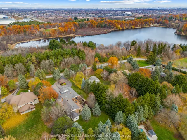 Welcome to this stunning custom-built raised bungalow on a private 1-acre lot in one of Brampton’s most prestigious enclaves, directly across from Heart Lake Conservation Area. Offering 7,700 sq ft of total living space, including 3,200 sq ft above grade and a breathtaking 4,500 sq ft walk- out basement with an indoor pool complex and waterfall, this home is a true retreat. The chef’s kitchen features a walk-out balcony, custom wood cabinetry, and natural light, capturing unobstructed views of Heart Lake and surrounding forest. The family room offers a walkout balcony overlooking the firepit and landscaped gardens, perfect for gatherings. The upper level includes four spacious bedrooms, with the primary suite boasting a private ensuite and walk-in closet. The lower level offers two additional bedrooms and a large recreational area with oversized windows, a fireplace, wet bar, and walkout to a stamped concrete patio. The indoor pool (18 ft x 42 ft) area features 14-foot ceilings, a waterfall, swim-up bar, and state of the art climate control, creating a year-round resort experience. Completing this luxurious space is a sizable gym, sauna and shower area. Indoor-outdoor flow seamlessly links to beautifully landscaped gardens and a stone patio with a gas firepit, providing an outdoor oasis. The backyard offers privacy and tranquility with mature trees, lush landscaping, and a large open yard for recreation. The front driveway is stamped concrete, with 5 vehicles indoors. Located on conveted Conservation Drive, surrounded by multimillion-dollar properties and with no homes across the street, this estate offers unobstructed views, nearby trail access, abundant wildlife, and a luxurious lifestyle immersed in nature.