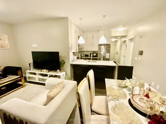 Welcome to an exceptional corner suite at Soleil Condos by Mattamy Homes in Milton-where fined design meets effortless living. This luminous 2-bed, 2-bath residence offers 969 sq ft of indoor space plus an expansive 338 sq ft patio, thoughtfully laid out for both everyday comfort and memorable entertaining. Step inside to soaring 9-ft ceilings and rich, modern flooring that flow throughout the home. The fully upgraded bathrooms and chef-inspired kitchen are true showpieces: sleek quartz countertop, striking backsplash, premium stainless-steel appliances, designer deep sink, contemporary cabinetry, and brushed-gold faucet with matching soap dispenser. Smart touch Entry such as keyless entry and a smart thermostat elevate convenience and security. The primary suite is generously proportioned, and features a stylish ensuite with a glass-door standing shower. Bedroom feature a spacious walk-in closet with large window. The second bedroom is equally large, with an oversized window, ample closet space, and a private three-piece bathroom, ideal for family or guests. The open family and dining area looks onto the patio through three large windows, filling the home with daylight and framing serene outdoor views. Outside, the expansive patio serves as a perfect venue for hosting friends, dining al fresco, or simply enjoying quiet evenings. Building amenities enrich daily life: a rooftop garden terrace, fitness center, and social lounge. The suite includes one underground parking ( designated handicap-accessible parking, offering ease and convenience for residents, Next to the Elevator) and one locker. Shows beautifully-arare opportunity that stands out. Great place to call a home : close to shopping, Milton Hospital, public/catholic schools, parks, Public Transit, Restaurants & plazas, with easy access to Highways 401, 407, and 403.