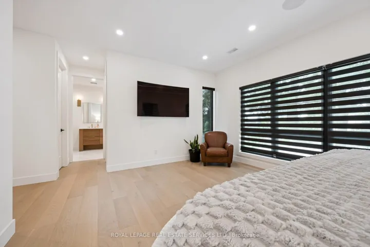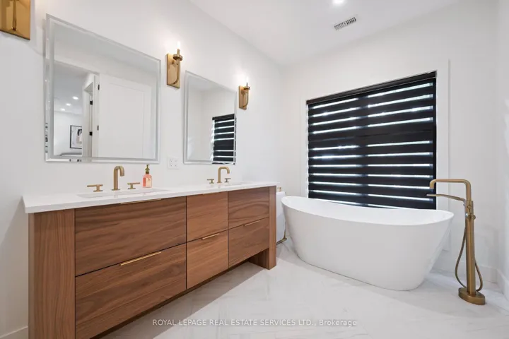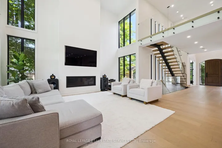 INSPIRED ENTERTAINING! A custom modern residence by acclaimed architect Jeff Cogliati (Bloom Architects), with striking architectural lines, large-scale windows, and a design tailored for everyday living and entertaining. Situated on a sprawling 0.22 acre lot, the home makes a striking first impression with its sculptural stone façade, dramatic sloped roofline, and cedar-clad insulated garage doors with EV charging outlet. Inside, expansive double-height slot windows flood the interior with natural light and frame a tranquil Zen Garden courtyard – the focal point of the main level. A floating mono-beam staircase with solid white oak treads anchors the space, leading to a stunning two-storey living room, dining area, and a chef-inspired kitchen designed for entertaining. Highlights include a large island, Sub-Zero fridge, Wolf six-burner gas cooktop, pot filler, double wall ovens, beverage fridge, and a prep kitchen with second dishwasher, instant hot water faucet, and additional beverage fridge. Custom millwork throughout the kitchen, vanities, and mudroom built-ins ensures exceptional craftsmanship and cohesive design. Accordion glass doors open to a covered terrace with built-in speakers, pot lights, and BBQ gas hookup for seamless indoor-outdoor living. Upstairs, the luxurious primary retreat features dual walk-in closets and a spa-inspired five-piece ensuite with heated floor. A junior primary suite offers heated flooring in the bedroom, dressing area, and ensuite, while two additional bedrooms share a beautifully appointed five-piece bath. Additional features include 7.5″ engineered white oak floors, a private two-storey office overlooking the Zen Garden, an oversized mudroom with second powder room and backyard access, 4-zone in-ceiling speakers, and dual high-efficiency HVAC systems for optimal climate control. Ideally located near top-rated schools, shopping, dining, highways, and the GO Train. An architecturally distinct home in sought-after West Oakville.