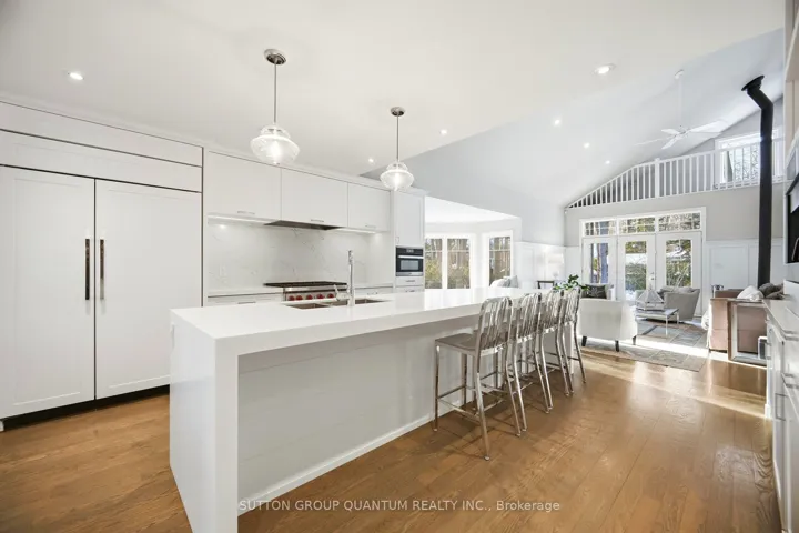 Welcome to a truly exceptional custom bungalow, blending timeless design & comfort on a 75 ft x199 ft lot with superior craftsmanship throughout. Renovations & Additions completed by David Small Designs. The open-concept main level features cathedral ceilings, custom solid hardwood floors, smooth ceilings, large picture windows. Elegant wall detailing includes crown moulding, shiplap, wainscotting, & panelling. The gourmet kitchen overlooks the great room & is anchored by an oversized waterfall centre island, quartz counters & backsplash, walk-in pantry, & extensive cabinetry. Premium appliances include a Wolf 6 burner gas range, Sub-Zero refrigerator & Miele built-in plumbed coffee machine. The great room impresses with soaring 18-ft cathedral ceilings, extra-high wainscotting, large windows, a Jotul wood-burning stove & walkout to the backyard oasis. A sun-filled loft with skylight, custom desk & credenza provides additional flexible space. The main-level laundry & mudroom with garage access offers custom solid wood cabinetry, flagstone flooring, & backyard access. The primary bedroom features 9-ft ceilings, hardwood floors, crown moulding, custom draperies, panelled accent wall, & a custom walk-in closet. The spa-inspired 6-piece ensuite includes a freestanding tub, curbless glass shower, bidet, & double vanity. Two additional bedrooms feature hardwood floors, custom millwork, & generous closets. Finished lower level offers lots of living space for guests or extended family with a large recreation area, wet bar, entertainment space with projector, fireplace, exercise and yoga rooms, 4-piece bath, & ample storage. Exterior highlights include Cape Cod siding with stone accents, paved driveway with stone detailing & lighting, professional landscaping, inground sprinklers, covered porch with stone patio & glass railings, fenced yard, fire table, and hot tub. Close to Port Credit , Lake Ontario, GO station, schools, tennis & pickleball courts nearby & walking trails.