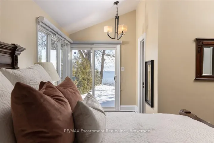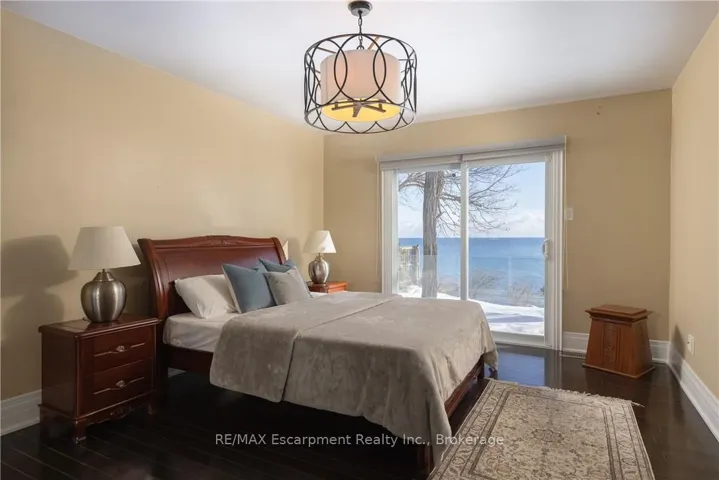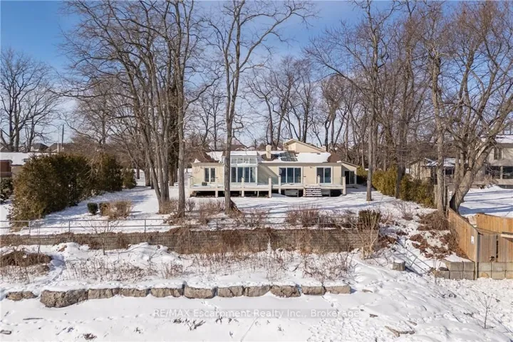 **Stunning Waterfront Living on Lake Ontario**. Nestled along the shores of Lake Ontario with approximately 100 feet of lake frontage, this exceptional 4+1 bedroom, 3+1 bathroom residence offers an unparalleled lifestyle. A tree-lined driveway welcomes you to this tranquil retreat, where grand entry doors open to a light-filled interior accentuated by expansive windows and skylights throughout. The open-concept Living Room showcases remarkable architectural detail in the skylights, highlighted by a double-sided wood-burning fireplace shared with the breakfast area and kitchen. The spectacular custom kitchen features granite countertops, premium appliances, and a walkout to the sunroom-all commanding unobstructed lake views. The separate dining area is perfect for a more formal evening with family and friends. The principal bedroom provides a five-piece ensuite, walk-in closet, and direct walkout to the backyard overlooking the water. The second bedroom offers deck access with stunning lake vistas, while a versatile third bedroom and loft-level fourth bedroom complete the main living spaces. The finished lower level encompasses a family room, recreation area with wood stove, additional bedroom, laundry, and two-piece bath. This unique property delivers breathtaking waterfront views without the added expense of maintaining a seawall. Conveniently located near Shell Park, the waterfront trail, Burloak Waterfront Park, and Appleby GO Station, this residence represents an extraordinary opportunity for discerning buyers. Luxury Certified.