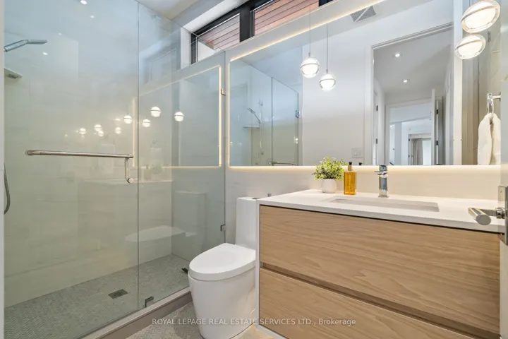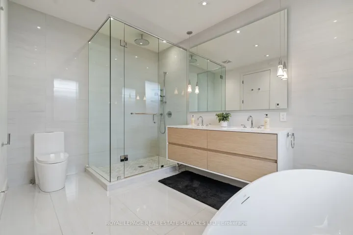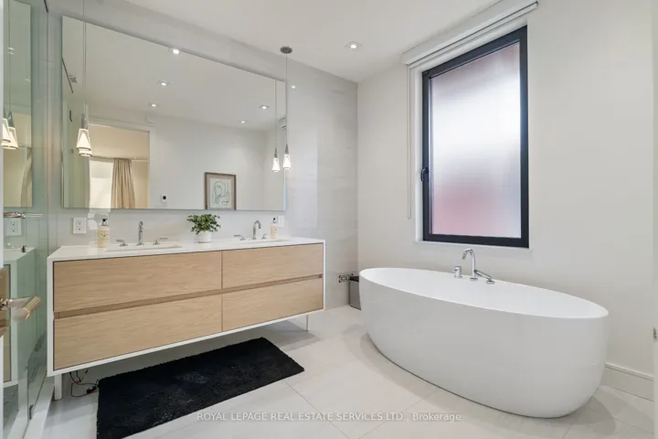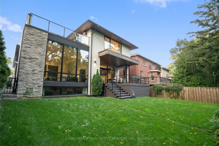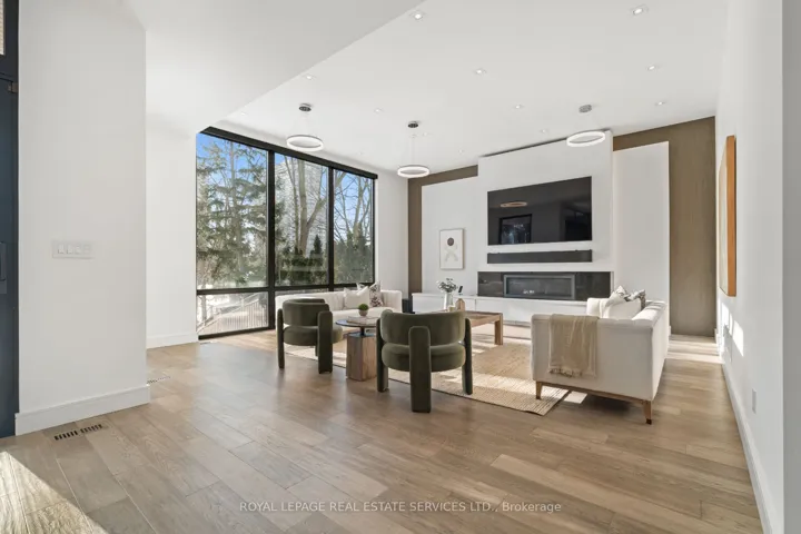Stunning modern-contemporary custom residence in the heart of The Kingsway, offering an exceptional combination of design, scale, and location. Situated on a rare 54 x 199 ft ravine lot backing onto Tom Riley Park, this home provides a private and tranquil setting surrounded by mature greenery, while remaining just steps from transit, top-rated schools, and the vibrant shops and restaurants along Bloor Street. Spanning approximately 5,200 sqft of total living space, this 4+2 bedroom, 5 bathroom home showcases innovative architecture, premium finishes, and a highly functional layout across all levels. The main floor is anchored by a contemporary chefs kitchen with Caesarstone countertops and backsplash, Jenn-Air, Bosch, and Wolf appliances, a built-in coffee station, and custom wine display, seamlessly flowing into open concept living and dining spaces. Expansive glass doors connect to a covered 340 sqft patio with fireplace, perfect for year round entertaining. Upstairs, a skylit hallway leads to generously sized bedrooms, spa-like baths, and a 326 sqft upper terrace with ravine views, while the lower level offers a dedicated wine cellar, recreation room with fireplace, and state-of-the-art home theatre with 98″ 4K screen and custom sound system. Additional highlights include multiple gas fireplaces (indoor and outdoor), heated basement floors, engineered hardwood throughout, illuminated stair features, dual laundry rooms, smart-home automation, and a private backyard oasis designed for relaxation. Rarely does a property of this calibre become available in such a prestigious and family-friendly neighbourhood.