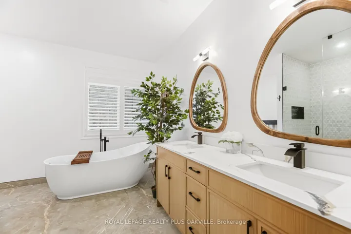 Rarely available this beautiful bungaloft has over $225K in recent upgrades! Refinished Maple hardwood flooring throughout, wood staircase with wrought iron spindles (2023), Kitchen reno’d with quartz counters, backsplash and redesigned cabinet doors (2023), all 3 main bathrooms recently renovated bathrooms with quality workmanship in 2025, basement bath updated 2023. Foyer tiles 2025.Gorgeous open concept layout sundrenched with natural light. Vaulted ceilings! California Shutters throughout (2023). Situated on a large irregular quiet corner lot with lovely landscaping, newly paved rear patio and front driveway and walkway 2025! Private backyard!Fully finished basement with 2nd kitchen or bar, rec room with electric fireplace, games area, 2 bedrooms, den & 3 piece bath! Excellent for extended family or income potential! Located in demanding Bronte Creek neighbourhood near walking trails, Bronte Park, walk to schools and minutes to highways 407 & QEW/403! Will not disappoint!