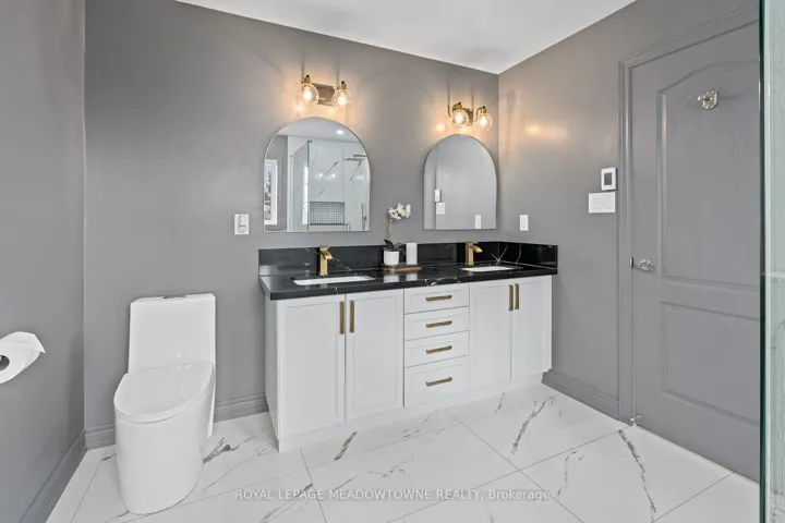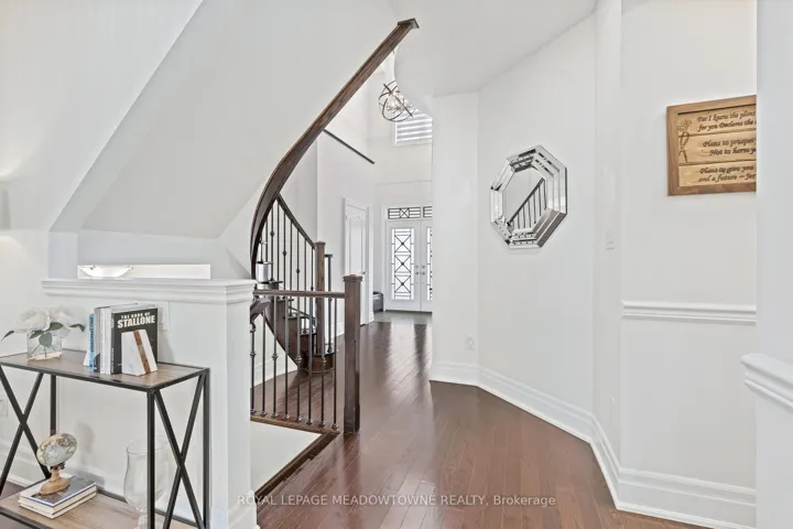 This stunning Georgetown South home, perfectly positioned on a premium lot where nature becomes part of your everyday life. From the moment you arrive, the custom flagstone porch and grand double door entry set the tone for what awaits inside. Step into a soaring foyer that opens into a beautifully finished home, where every detail has been thoughtfully curated. The heart of the home is a magazine worthy, fully renovated kitchen designed to impress, flowing seamlessly into the family room, complete with a striking stone gas fireplace and expansive views of the water beyond. With 4 spacious bedrooms and 4 bathrooms, including a dream primary retreat with a luxurious ensuite, this home offers both comfort and sophistication. Hardwood floors, custom ceilings, crown moulding, and pot lights add warmth and elegance. The finished basement with a custom fireplace provides the perfect space for a home office or quiet retreat, adapting effortlessly to your lifestyle. Step outside to a spectacular two-tier deck wrapped in natural stone, extending around the side and front of the home-an ideal setting for entertaining or simply unwinding while surrounded by peaceful views and the sounds of nature. Located just steps to scenic walking trails, the Gellert Community Centre, shopping, and convenient commuter routes, this home blends tranquility with everyday convenience. With no sidewalk, there’s parking for up to 6 vehicles. This is more than a home, it’s a lifestyle you’ll fall in love with.