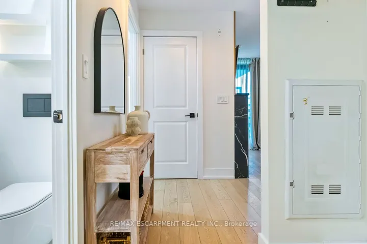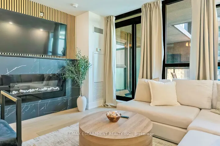 This is a totally renovated stunning condo, a one-of-a-kind in the Cloud9 condos. The floors are new engineered hardwood with a white oak finish. This 1+1 has transformed the floor plan to accommodate a large walk-in closet with custom built-ins and a large sleeping area with picturesque windows to the balcony. The kitchen is completely renovated with gorgeous flat panel matt cabinetry and gold hardware. The stone counters elevate the interior with custom herringbone tiled backsplash. The fluted island adds a stylish detail to the suite. New appliances and washer & dryer. A striking black matt marble veined fireplace is a feature wall in the living room with natural wood slat panels the upper wall. The washroom is also totally renovated with a glass shower door, an LED shower niche, and stunning black hardware. There isa floating vanity and a wall hung toilet. Enjoy the only totally renovated option available today at Cloud9! Incredible value with the money spent on this renovation that would be approx.$100,000 value today. Selling at a loss the layout is outstanding. The amenities include a roof top patio for bbq and entertaining, an indoor pool, and a gym all on the rooftop level. There is a concierge and the parking spot is underground with a locker on the same level. Plenty of visitor parking. The closest transit stop is at Kipling and Henley Cres just a few minutes away and connecting you to Toronto’s transit system. It also has route Kipling, route Wilson & Finch LRT and more nearby. Close to Humber College. For driving it is a quick access to the 401, making it easy for those getting into and out of the city off Islington Ave. The Humber Trail is next to the building along Humber River. Amenities all close by.