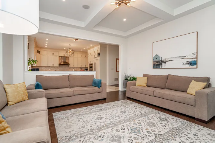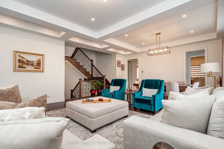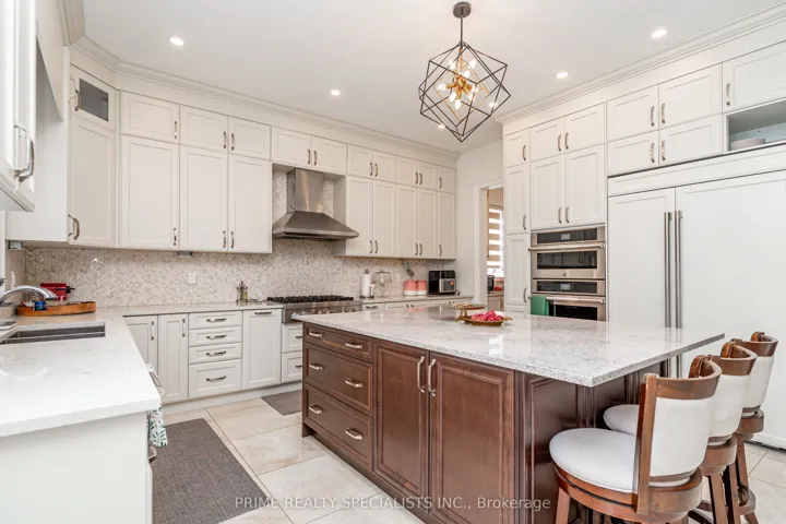 Most Spectacular Luxury Living In A One-Of-A-Kind 5-Bedroom, 4.5-Bathrooms, On Premium Corner Lot. Features 4,353 Sq Ft Of Upper-Grade Living Space. 10 Ft Ceilings on the main floor, 9 Ft on the 2nd floor, And 9 Ft in the Basement. Home Offers Unique Dual Master Bedrooms. Very Unique, Open, And Spacious Foyer With Double-Door Entry And Vaulted 22 Ft Ceilings With Windows For Natural Light. Northwest-Facing With Lots Of Sunlight And Windows. Over $210K Spent On Upgrades. Luxury Kitchen Comes With Ceiling-Height, Extra-Large Wall Cabinets With Crown Moulding, Built-In Custom Stainless Steel Jenn Air 5-Piece Appliance With Custom 6-Burner Gas Cooktop, Custom Pantry, Servery, And Quartz Countertops With Matching Backsplash. Kitchen Features A Large 7 Ft X 5 Ft Centre Island With Under-Counter Storage Cabinets, Perfect For Entertaining. Large Family Room Boasts Large Windows, Wall-Mounted TV Bracket, And Ample Space For Three Couches. All Bedrooms Are Attached With Walk-In Closets And Ensuite Bathrooms Containing Glass Shower Stalls. All Bedroom Ceilings Are Vaulted For Extra-High Windows For Natural Light. Throughout The Home: Pot Lights, Upgraded Light Fixtures, And Hardwood Flooring. Three Bedrooms Have Wall-Mounted TV Installation Brackets. Main Floor Office Features Built-In Desk, Pot Lights, And Sitting Area. Large Living And Dining Room With Coffered Ceiling And Designer Light Fixtures. Spacious Eat-In Kitchen With Large, Open Breakfast Area. Master Bedroom Ensuite Comes With A Retreat Room (Usable As A 5th Bedroom). Large Walk-In Closet (17 Ft X 11 Ft) Attached To Master Bedroom Through Retreat Room. Mud Room Contains Laundry Facilities And Wall-Mounted Storage Cabinets. Has A Separate Entrance. Two Entrances To Basement. Garden Door Walk-Out To Backyard From Kitchen. Large Backyard Boasts Complete, Shadow-Free Sunlight. House Features Built-In Ceiling Speakers And 22 Ft High Vaulted Ceiling At Foyer And Main Entrance, Offering Natural Light Throughout.