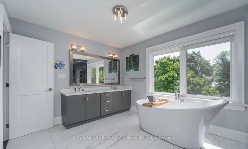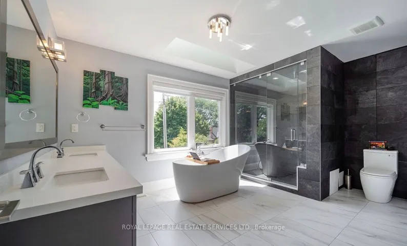 CUSTOM BUILT IN 2018! ONE OF BURLINGTON’S MOST DESIRED NEIGHBOURHOODS! Designed for both everyday living and effortless entertaining! Premium 60′ x 142′ north-west facing lot on a quiet street in Central Burlington. The main level showcases a living room with soaring cathedral ceiling, a dramatic gas fireplace, and a French door walkout to the deck, creating a bright and inviting atmosphere. The gourmet kitchen is a true centrepiece, complete with quartz countertops, designer backsplash, premium S/S appliances, and an oversized 8′ island with breakfast bar, flowing seamlessly into the dining area. A dedicated main floor office provides the perfect space for working from home. Upstairs, the private primary retreat offers a luxurious escape with a walk-in closet, two-sided gas fireplace, and a spa-inspired five-piece ensuite featuring a skylight, double sinks, designer tub, steam shower, and heated floor. Two additional bedrooms, a family room, beautifully appointed five-piece main bathroom, and a laundry room complete the upper level. The finished basement extends the living space with a recreation area, fourth bedroom, laminate flooring, and a three-piece bathroom – ideal for guests or extended family. Step outside to your private backyard oasis, featuring a custom deck with hot tub and an interlock patio, perfect for relaxing or entertaining. Additional highlights include expansive windows that flood the home with natural light, engineered hardwood flooring throughout main and upper levels, custom cabinetry in kitchen and all bathrooms, three gas fireplaces, room for a fifth bedroom on the upper level, hardwired security, multiple walkouts, and an inground sprinkler system covering the front and back yards. Ideally located close to Burlington’s vibrant downtown core, Spencer Smith Park, the lake, major highways, and the GO Train, this exceptional home delivers the perfect balance of luxury, convenience, and lifestyle. (certain images have been digitally enhanced)