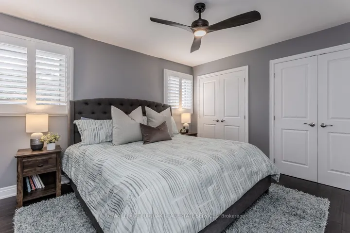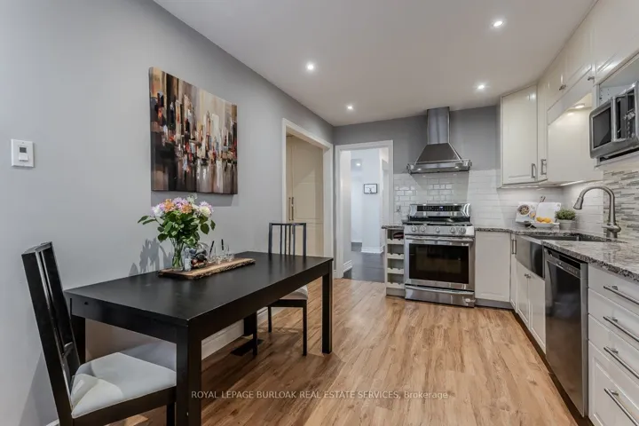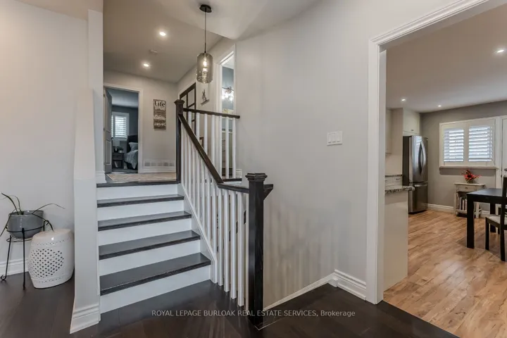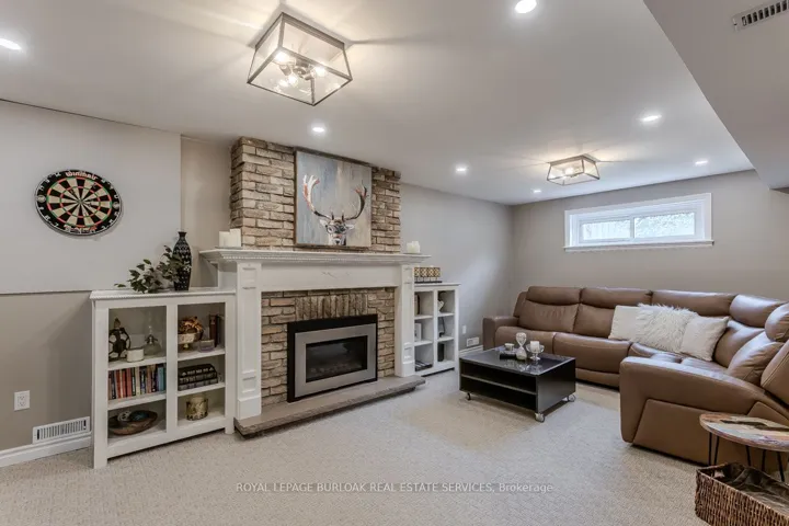 Welcome to this beautifully updated turnkey family home with standout curb appeal featuring a stone façade and stamped concrete walkway. Step inside to a spacious, light-filled interior with elegant and luxurious renovations at every turn. The open concept main floor welcomes you home with a gorgeous hardwood staircase and a formal dining room overlooking a huge sunken living room with a walkout to the backyard-perfect spaces for everyday living and entertaining family gatherings. The modern eat-in kitchen is designed with both style and function in mind, featuring granite countertops, soft close drawers, stainless steel appliances including gas range, a sleek tile backsplash and built-in wine storage. A convenient mudroom with built-in cabinets provides direct access to the 1.5-car garage, which accommodates one full-size vehicle and offers ample extra space for bikes, lawn accessories, workshop tools and more. Upstairs, the spacious primary retreat includes dual closets and a beautifully renovated 4-piece ensuite bath. Two additional well-sized bedrooms and a full 4-piece bathroom provide plenty of room for growing families. All bedrooms feature California shutters, upgraded baseboards and gleaming hardwood floors. The finished lower level expands your living space with a large recreation room anchored by a cozy brick-surround gas fireplace, above grade windows, an additional bedroom (no closet), a 2-piece bath, utility/laundry and crawl space rooms for storage. Step outside to your private, fully fenced backyard oasis complete with landscaped patio, BBQ gas hookup, mature trees and green space for kids and pets to enjoy. The gentle steps between levels make this 3-level backsplit the ultimate bungalow alternative. Offering a perfect blend of comfort, and style this home is designed for modern family living. Ideally located close to top-rated schools, parks, amenities, transit and shopping.