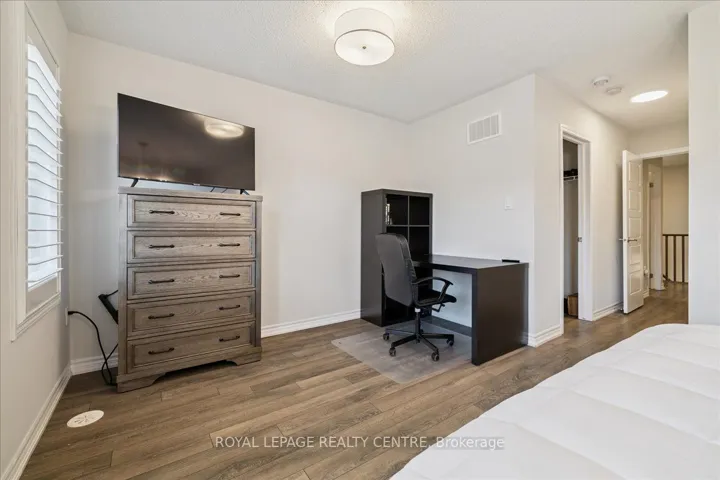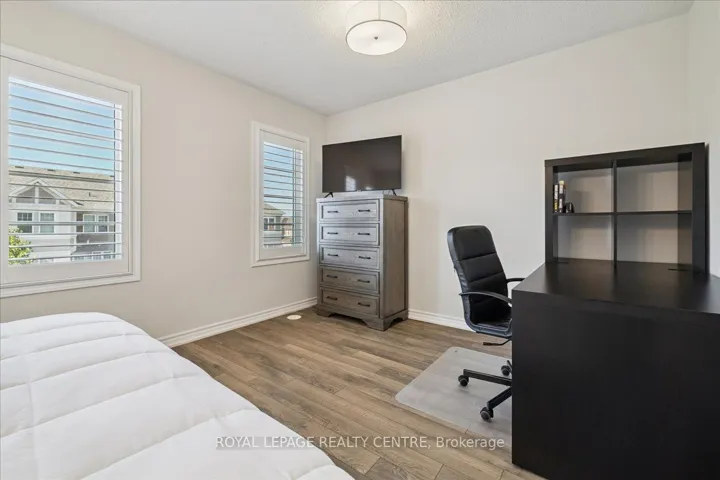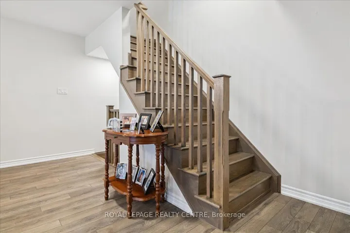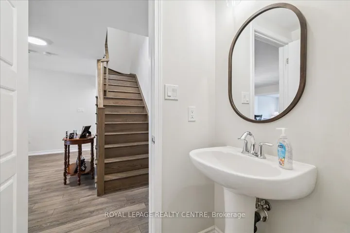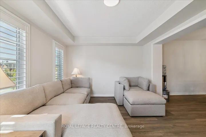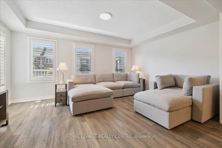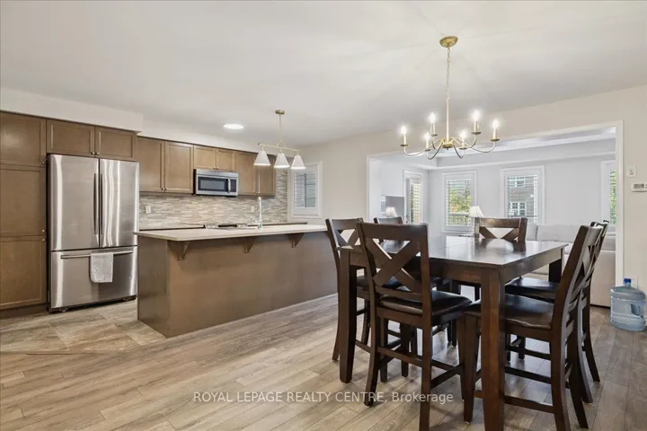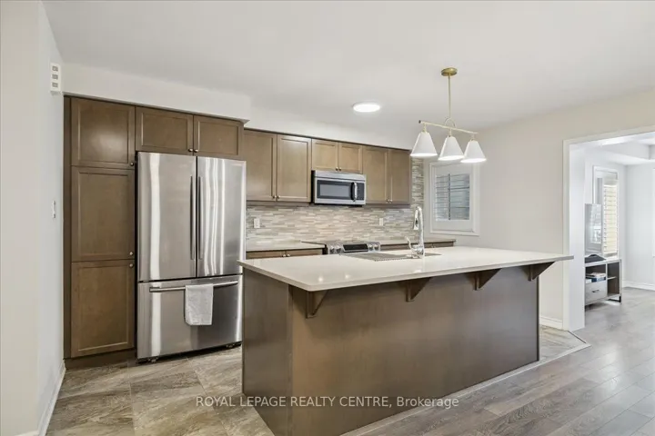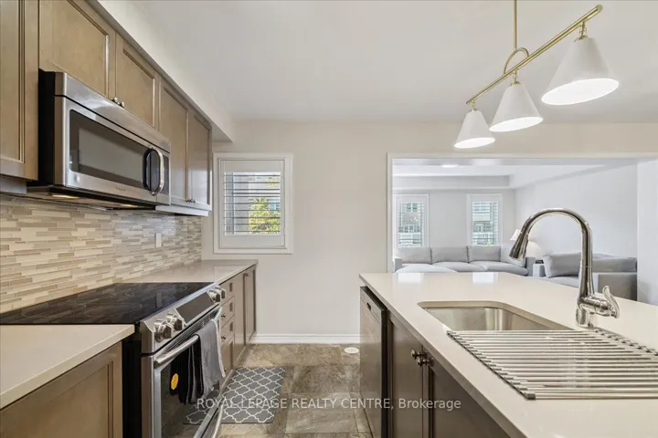 Stunning Freehold Townhome! Welcome to this beautifully maintained home located in the highly sought-after, family-friendly Preserve community. Impeccably cared for, this bright and spacious residence offers carpet-free living with laminate flooring throughout and modern contemporary finishes that exude comfort and style. The main level features a large foyer with double coat closet, a laundry room with sink, and direct garage access for added convenience. Upstairs, enjoy an impressive open-concept living space perfect for entertaining. The upgraded kitchen boasts quartz countertops, stainless steel appliances, and a large center island with seating, overlooking the dining area. The cozy living room provides the perfect place to relax with walk-out access to a private balcony ideal for morning coffee or evening unwinding. The third level offers a spacious primary bedroom with walk-in closet and a 3-piece ensuite featuring a glass-enclosed shower and vanity with quartz countertop. The picture-perfect second bedroom includes double closets and built-in window seating originally a 3-bedroom floor plan redesigned to allow for a larger, more open space. A stylish main bath with quartz countertop, undermount sink, and updated lighting completes this level. Additional features and upgrades include oak staircase, updated light fixtures, Vinyl shutters and extra storage off the porch and in the garage. Located close to top-rated schools, parks, trails, shopping, and transit, this home offers the perfect combination of elegance, comfort, and convenience. A true gem in Oakville’s prestigious Preserve community!