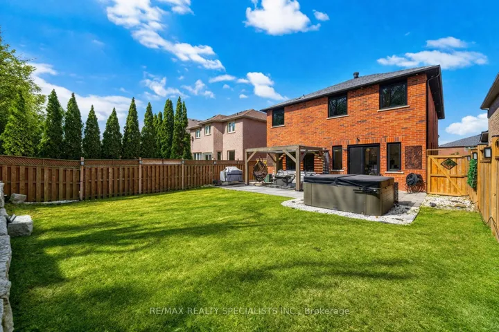Welcome to this stunning renovated 2827 Sq Ft detached home on an oversized 40 x 145 ft lot, backing onto private Grand Highland greenspace and forest, and offering the rare advantage of two primary bedrooms upstairs. Impressive curb appeal begins with fascia pot lighting, interlock front steps, flagstone porch, and a modern front door with frosted sidelights. Inside, the open to above foyer makes an immediate statement with an 18 ft ceiling, cascading custom chandelier, palladium window, and curved oak staircase with iron pickets. Freshly painted interiors, 9 ft ceilings, and engineered hardwood floors throughout the main and second floor living areas add to the bright feel. Separate living and dining rooms add elegance and flexibility, while the family room offers a warm gathering space with a gas fireplace and views of the yard. The renovated kitchen and breakfast area are designed for everyday living and entertaining, featuring quartz counters and backsplash, under valance lighting, pantry wall, soft close drawers, and a centre island with quartz waterfall counter and breakfast bar. The eat-in kitchen walks out to an interlock patio with pergola and shade louvres, overlooking the backyard with a quarry stone retaining wall and solar fence lighting. Upstairs, the spacious primary suite features double door entry, large windows, a walk-in closet, and a luxurious 5 piece ensuite with double sinks, quartz counters, a glass shower with rainfall head, and a stand alone soaker tub. The second bedroom enjoys its own 4 piece ensuite and walk-in closet, ideal for guests, extended family, or older children. The additional bedrooms are generously sized with engineered floors and large windows. The finished basement adds a large open rec room, 3 piece bath, and cold room. Set in a convenient Mississauga location close to Highways 401, 403, 410, 407, and 427, Pearson Airport, Heartland Town Centre, Square One, parks, schools, and trails including Mc Kechnie Woods.