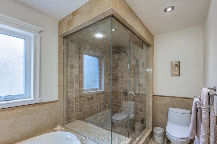 Welcome to prestigious Bridlepath Estates, one of Mississauga’s most coveted enclaves. Set on a beautifully landscaped 62.53′ x 120.01′ lot, this exceptional family home offers timeless elegance, generous principal rooms and a refined layout on a quiet, tree-lined street, moments to top-rated schools, U of T Erindale, Credit River trails, GO Transit and Hwys 407 & 403.Thoughtfully updated and meticulously maintained, the home showcases quality finishes throughout. A welcoming foyer with porcelain tile leads to elegant living and dining spaces with hardwood floors, crown moulding and a gas fireplace. The inviting family room features a dramatic floor to ceiling brick fireplace and rich Tigerwood flooring. The gourmet kitchen is designed for both everyday living and entertaining, with granite countertops, stainless steel appliances, a spacious breakfast area and walkout to a stunning 2-level composite deck, and a kitchen to fam room pass-through counter. Upstairs, 5 bedrooms provide exceptional flexibility for growing families, home office or fitness needs. The primary suite is a true retreat, complete with walk-in closet and a luxurious 6-piece ensuite with heated floors, jet tub and marble countertop. The professionally finished basement extends the living space with an additional bedroom, an additional office, a 3 piece bathroom, and a huge rec/family room with stylish wet bar, built-in bookcases and built-in storage. Step outside to your private backyard sanctuary with mature trees, firepit, bubbling rock water feature, barnwood shed with electricity, gazebo with hot tub rough-in and beautiful barnwood fencing. Interlock driveway and walkway, parking for 4 on the driveway and 2 more parking spaces in double garage automatic electronic openers and keypad entry . Inground sprinklers complete the setting. Major upgrades include newer heat pump, furnace & CAC (2024), and a full Timberline HD (50y) roofing system (2015). 200 AMP service, owned tankless water heater.