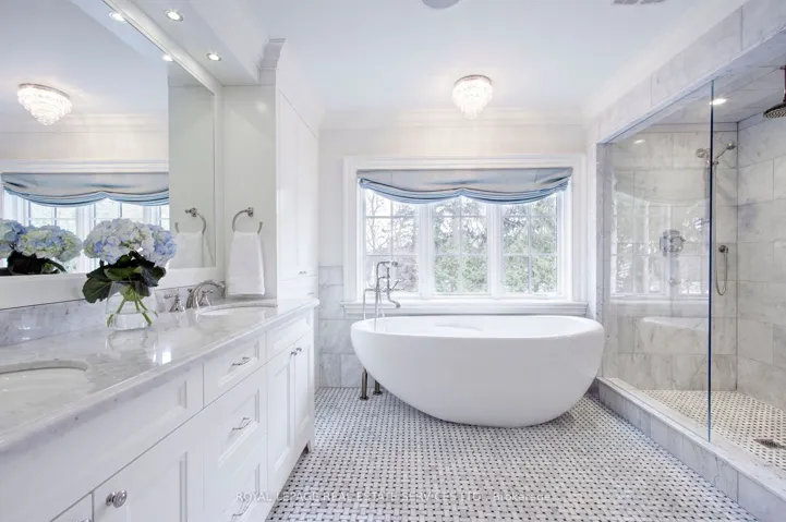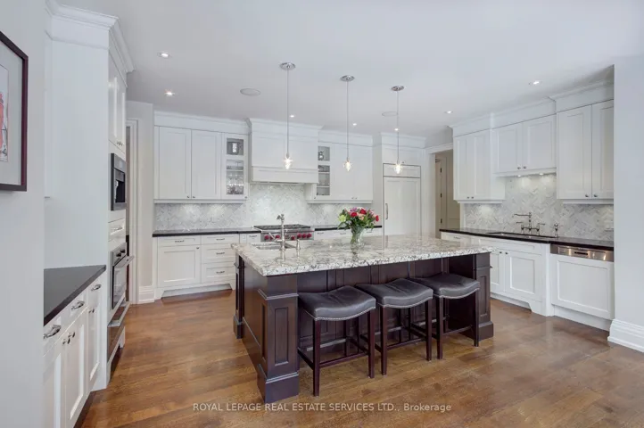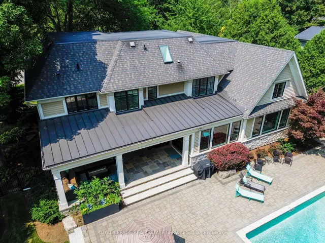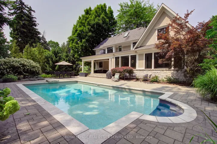 Welcome to 461 Copeland Court, nestled in the coveted Morrison district of South East Oakville, just steps from top ranked public and private schools. This transitional custom built home perfectly balances the timeless charm of a traditional “Old Oakville” estate and the edgy touch of a David Small design. Tucked at the end of a rare, tree lined, quiet court, the large stone and cedar covered front porch offers a calming sense of serenity. This executive residence is flooded with natural light from every angle, creating a warm and inviting atmosphere throughout. The designer chef’s kitchen does not disappoint, featuring professional series Wolf, Sub Zero and Miele appliances, an oversized pantry, a generous island, and an eat-in breakfast area overlooking the fully landscaped backyard and pool. The space flows seamlessly into the spectacular family room, highlighted by a soaring two story vaulted ceiling. Additional main floor features include generously sized principal rooms, a formal dining room, a private office, a large mudroom and a custom laundry room. The thoughtful use of imported stone, richly stained hardwood flooring and a matching staircase is complemented by refined architectural details throughout the home. Upstairs, you’ll find four generously sized bedrooms, including a luxurious principal retreat featuring a fitted walk-in dressing room and a spacious ensuite. The main bathroom boasts detailed imported stone finishes and a skylight that bathes the space in natural light. A fully finished basement completes the home, with a second family room, a fitted home gym, a games room, a four-piece bathroom, and a spacious fifth bedroom. Set on approximately one-third of an acre, the tree lined estate grounds provide exceptional privacy and opulent outdoor features, including an oversized full depth pool with a diving rock, a private covered outdoor dining area and family retreat, and professionally landscaped grounds showcasing soaring mature trees.