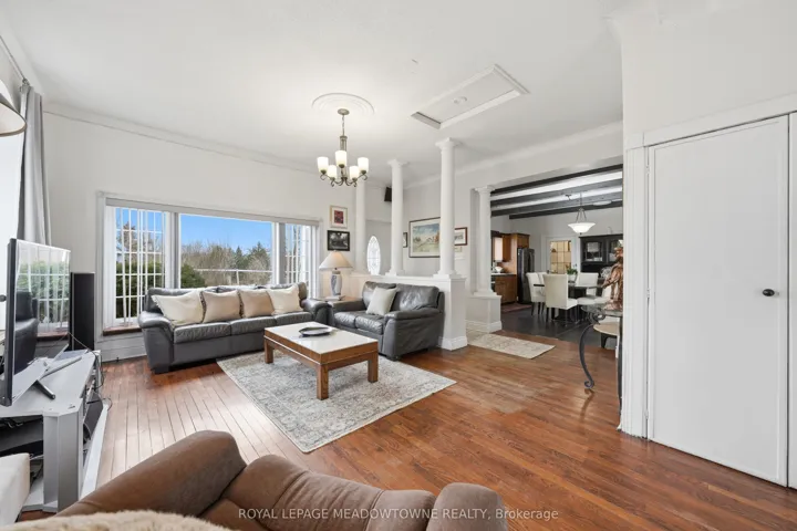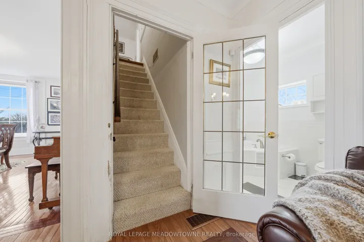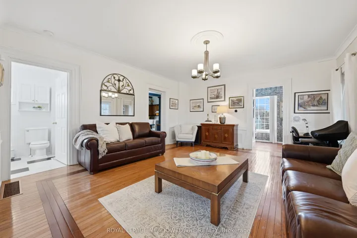 Stunning century home situated in the charming hamlet of Glen Williams on 12.63 acres. A quaint covered porch offers the perfect space to relax overlooking the front yard, ideal for morning coffee or evening cocktails. A convenient entrance off the driveway leads into a bright and open family room with hardwood flooring and crown moulding, overlooked by the eat-in kitchen featuring a beamed ceiling, tile flooring, wood cabinetry, updated appliances, gas range cooktop, tile backsplash and walk-out to the backyard and deck. On the opposite side, formal living and dining rooms provide great space for entertaining. Also on the main level is a versatile office, ideal for working from home or use as a playroom or creative space, along with a bedroom and 3-piece bathroom with a deep soaker tub and pedestal sink. Upstairs, the primary suite offers two separate entrances, hardwood flooring, double closets and bright picture windows. A second bedroom features broadloom flooring, crown moulding and closet space. The 3-piece bathroom includes modern finishes with a walk-in glass shower, bench seating and multiple shower heads. Outdoors, enjoy an entertainer’s deck, covered gazebo, patio under mature trees and beautiful gardens. Equestrian-ready with a six-stall barn and ample land to garden, ride or create your own retreat. Walking distance to local restaurants and parks, and a short drive to shopping, groceries and GO Transit. Quiet rural living with city amenities nearby.