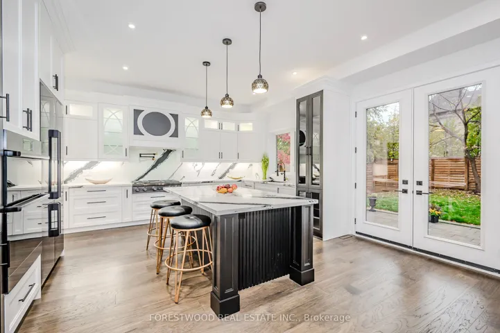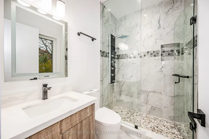 Once in a lifetime opportunity to own a custom built residence with nearly 5,000sqft of luxuriously finished living, 5+2 BEDROOMS & 7-BATHROOMS perfectly situated on a private court in a prestigious neighborhood. The home features a grand stone and brick exterior that opens into an interior defined by timeless design and high-end finishes. The main level offers a sophisticated open-concept living and a formal dining area. At the heart of the home, the stunning modern kitchen with masterful carpentry is lavished with upscale appliances, a large center island, premium quartz countertops, and a matching backsplash. An adjacent breakfast room provides a seamless walk-out to an oversized patio, while the spacious family room offers a comfortable retreat anchored by a classic fireplace. This level also includes a private separate office for professional needs and a functional mudroom with a convenient side entrance. A spectacular staircase, illuminated by a soaring skylight, leads to the upper floor. The primary bedroom serves as a luxurious sanctuary, featuring coffered ceilings, a stunning fireplace, and a walk-out to a private balcony. Its spa-like five-piece ensuite bathroom is finished with heated floors and designer tiles. A massive walk-in closet complete with custom organizers and a second skylight. Every additional bedroom on this level is designed with privacy in mind, as each includes its own dedicated ensuite bathroom. Each Of The Additional Four Bedrooms Have Private Ensuite Bathrooms With Three Walk-In Closets And One Large Closet. A generous laundry room finishes the upper level. The expansive lower level further enhances the living space with a large open-concept great room that features a fireplace and a walk-out to a private patio and backyard oasis. A custom bar and a secondary kitchen, a full bathroom, and the sixth and seventh bedrooms complete the lower level. This is a rare opportunity to own a masterfully crafted residence!