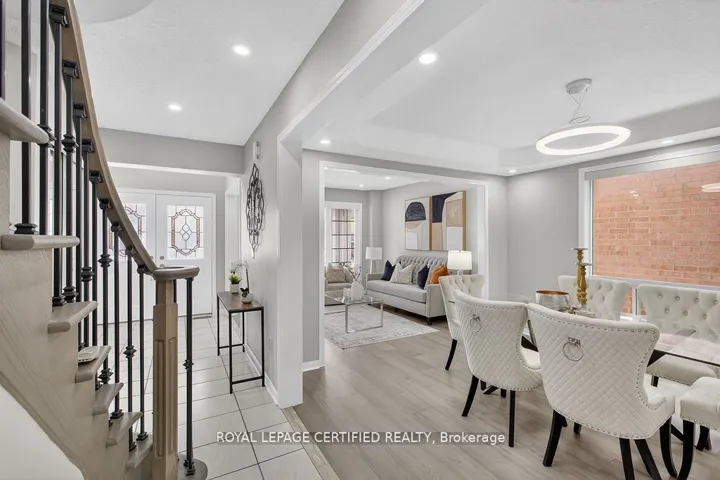 Welcome to this exceptional Mattamy-built 45-ft frontage brick detached house, offering abundant space, natural light, and timeless elegance in the prestigious Vales of Castlemore community. Ideally located on a T-intersection and not facing any homes, it provides an open, airy feel with ample parking-perfect for entertaining. This 4+2 bedroom, 3+2 bathroom home offers nearly 4,000 Sq. ft. of living space, including a 2-BED, 2-BATH LEGAL BASEMENT APARTMENT, providing income potential from day one. Situated in a peaceful, family-friendly neighborhood surrounded by green ravines, this home blends comfort, functionality, and luxury. A grand double-door entry opens to a spacious foyer leading into separate living, dining, and family rooms, ideal for large families or gatherings. The main family room features a gas fireplace, while a dedicated mudroom adds convenience. The home is carpet-free with engineered hardwood floors, oversized windows, and abundant natural light. The open-concept kitchen features quartz countertops, SS appliances, breakfast bar, high cabinetry, and generous storage, ideal for daily living and entertaining. Upstairs, the primary suite includes a walk-in closet and a spa-inspired ensuite with soaker tub, double vanity, and separate shower. Three additional spacious bedrooms offer excellent closet space. A second upper-level family room adds flexibility as a media room or potential fifth bedroom. Extensive upgrades include water softener, RO system, epoxy-finished garage with slat walls, lawn sprinkler system, pot lights, Acorn stair lift, premium blinds, stamped concrete, CVAC, garage opener, Wi Fi-enabled surveillance cameras, video doorbell, and decorative lighting. Roof (2017), Furnace & AC (2017 under warranty), Asphalt driveway (2024). Enjoy a custom-built deck with integrated seating for low-maintenance outdoor living. 2-car garage with parking for up to 5 vehicles. Walking distance to schools, parks, plaza, and transit. CHECK 3D VIRTUAL TOUR.